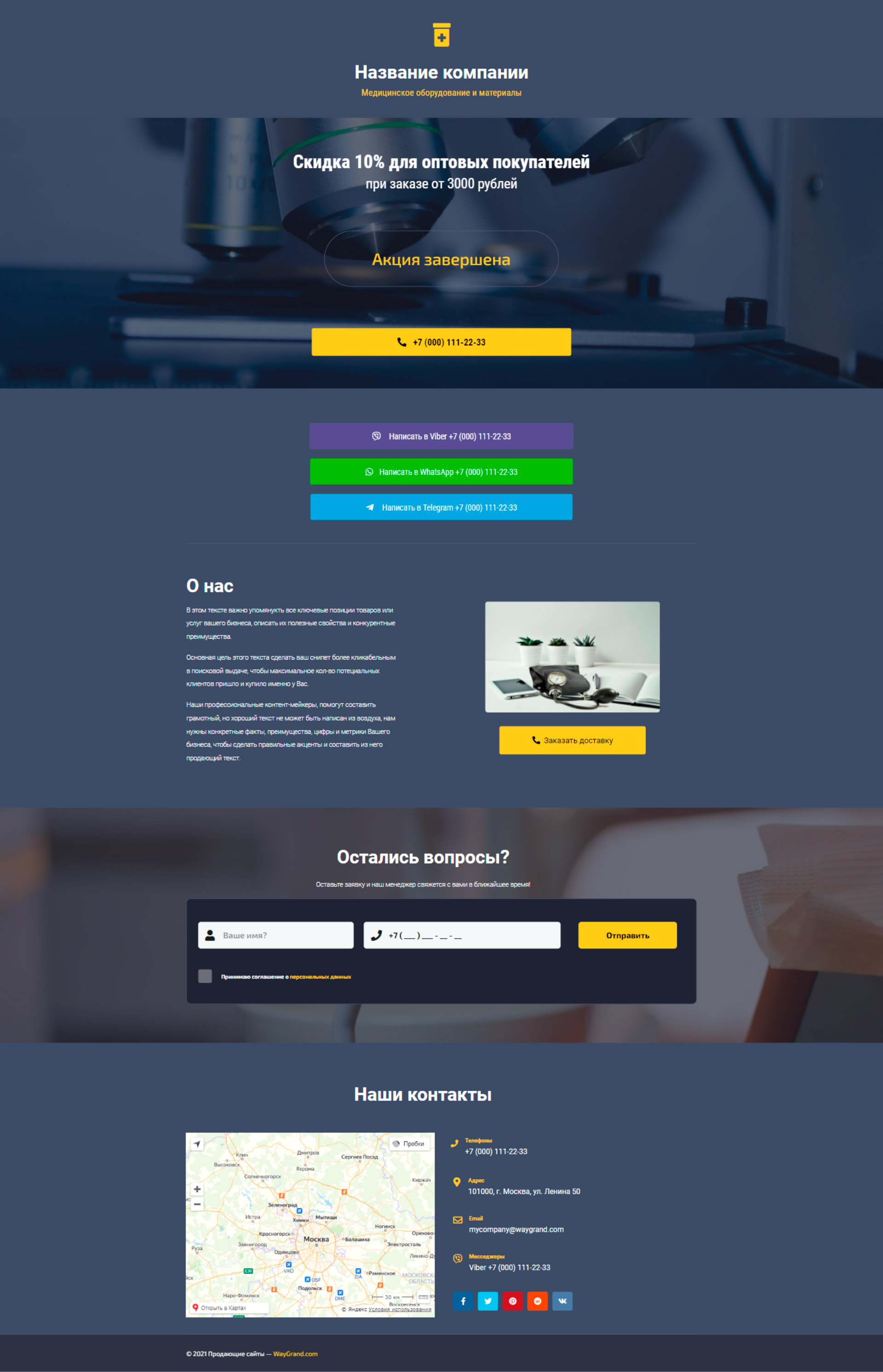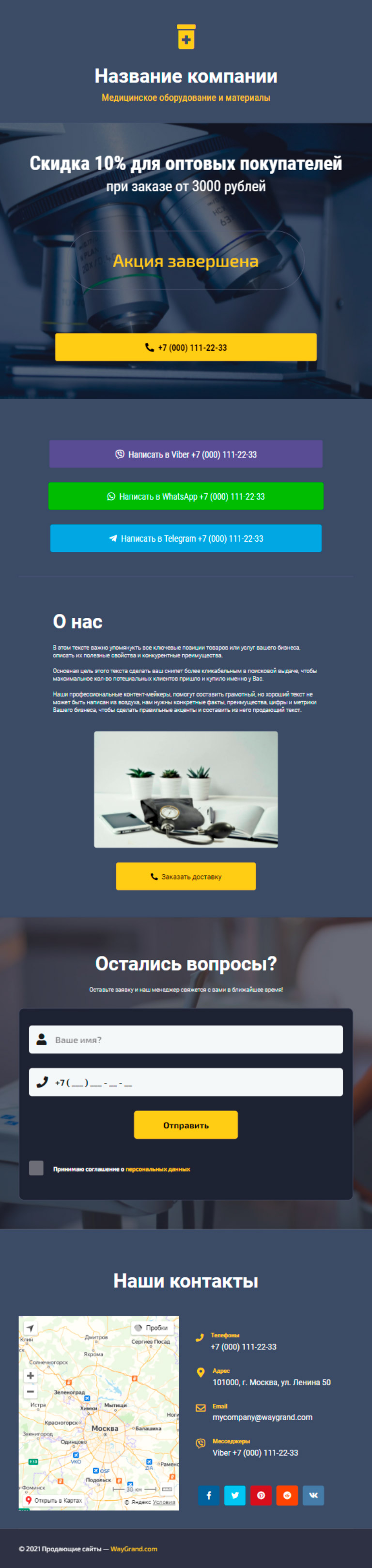 Закажите готовый продающий сайт визитка #1027101 в Калининграде за 5-7 дня «под ключ»: свёрстан, отрисован и готов к рекламе. Тематика шаблона «Медицинское оборудование и материалы».