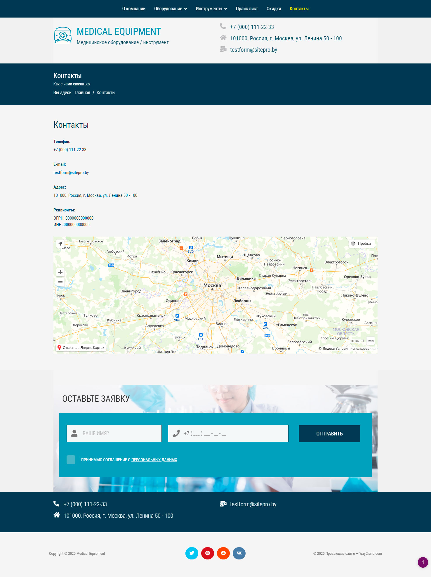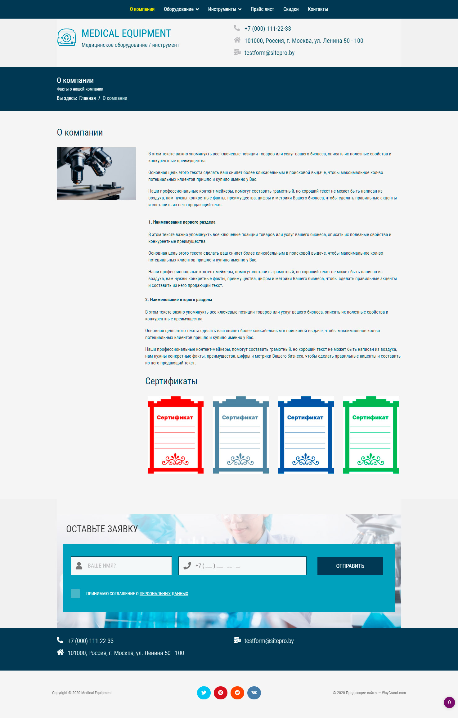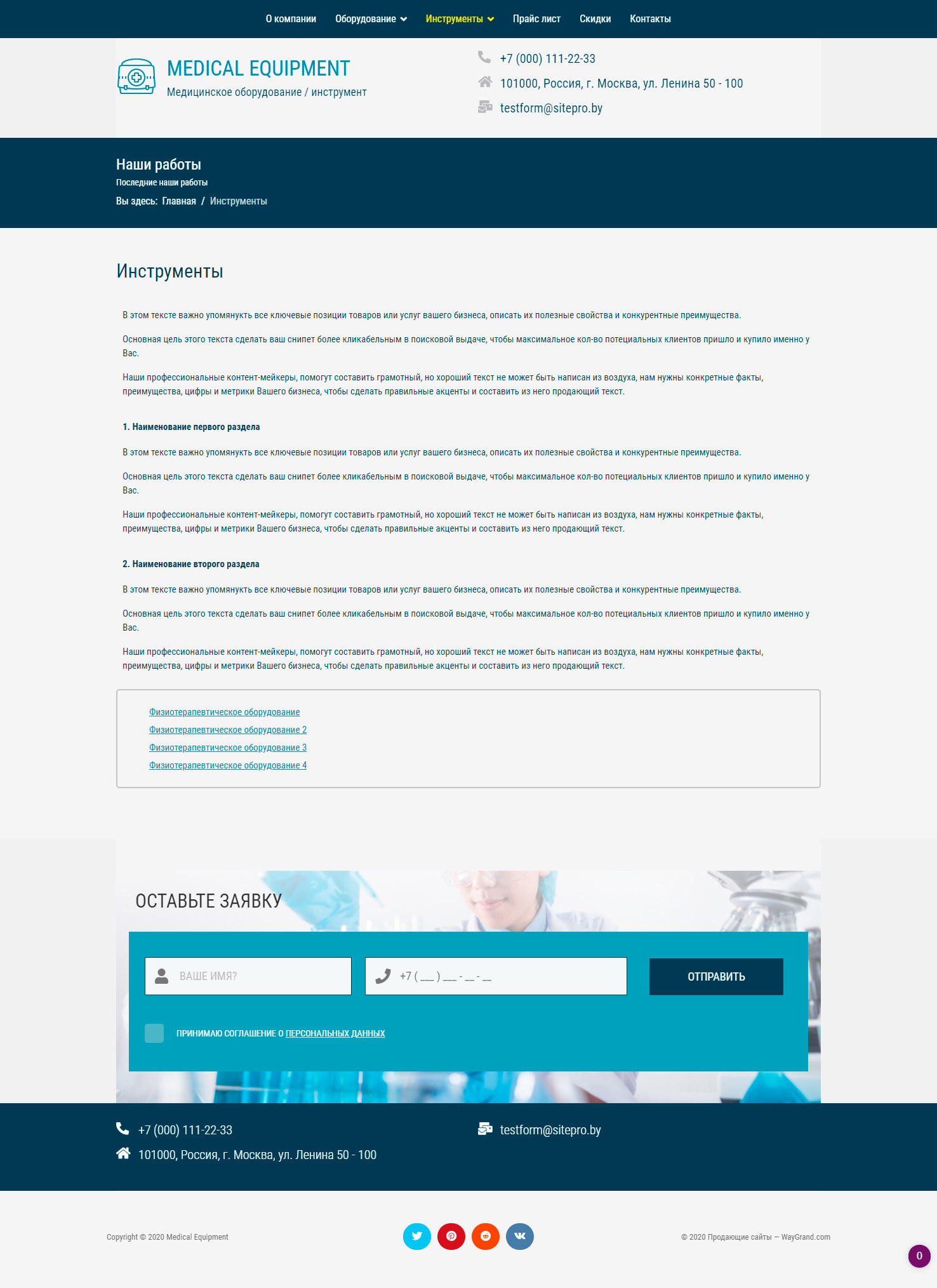 Закажите готовый продающий сайт визитка #1029301 в Калининграде за 5-7 дня «под ключ»: свёрстан, отрисован и готов к рекламе. Тематика шаблона «Медицинское оборудование / инструмент».