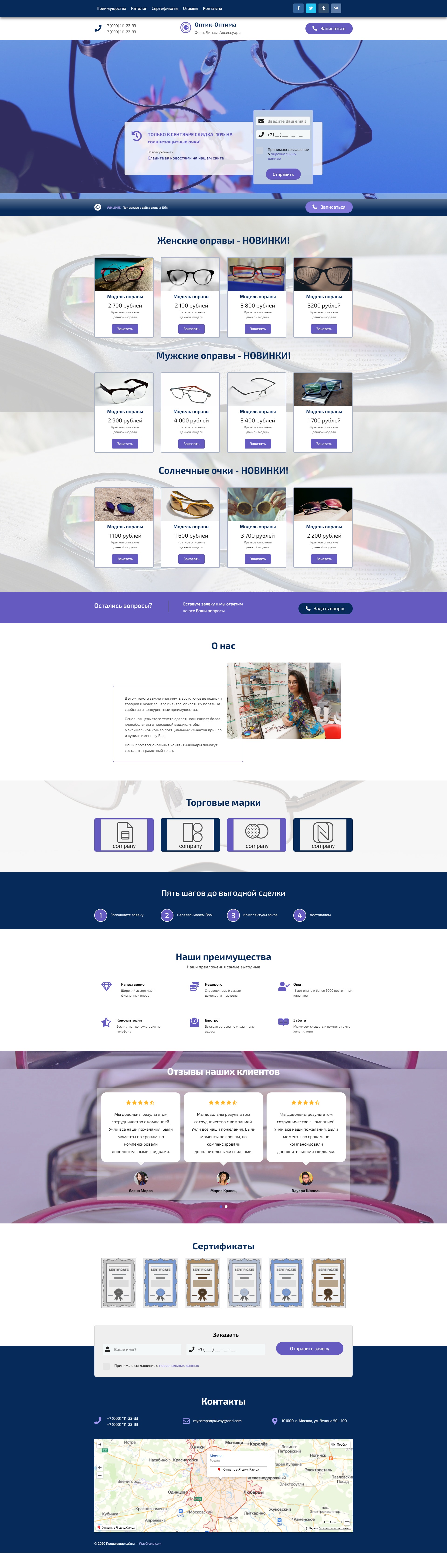 Закажите готовый продающий сайт лендинг #1032201 в Калининграде за 1-3 дня «под ключ»: свёрстан, отрисован и готов к рекламе. Тематика шаблона «Оптика».