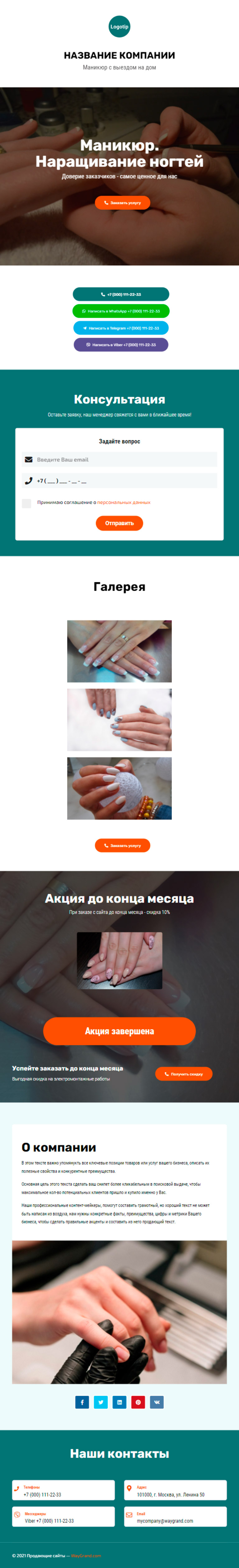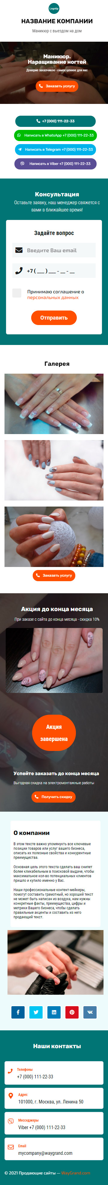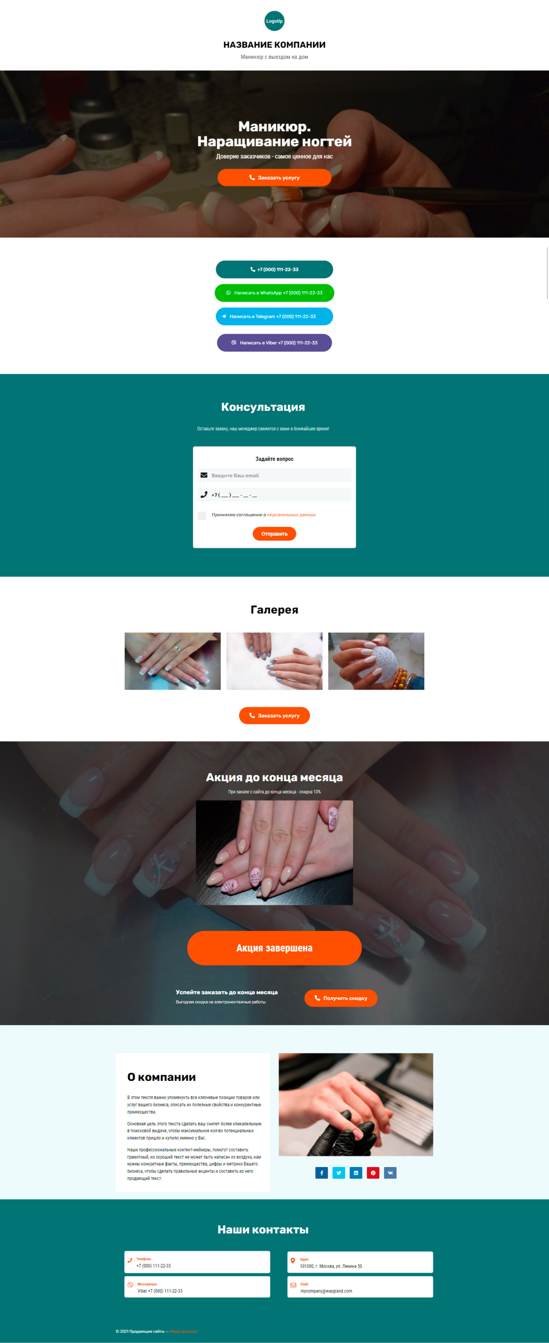 Закажите готовый продающий сайт визитка #1107101 в Калининграде за 5-7 дня «под ключ»: свёрстан, отрисован и готов к рекламе. Тематика шаблона «Маникюр. Наращивание ногтей».