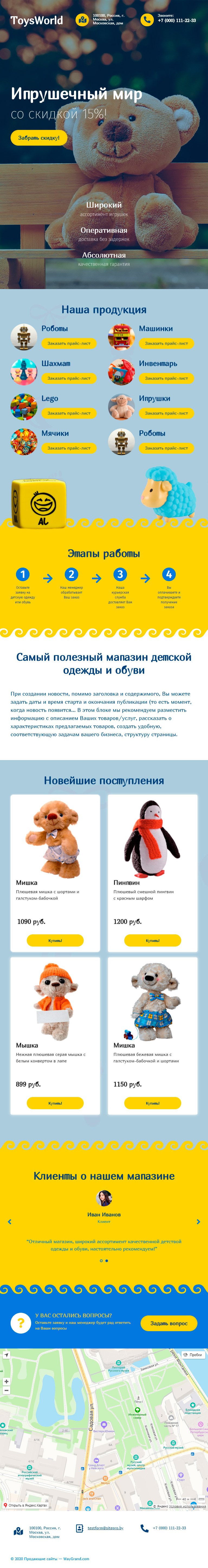 Закажите готовый продающий сайт лендинг #1509201 в Калининграде за 1-3 дня «под ключ»: свёрстан, отрисован и готов к рекламе. Тематика шаблона «Игрушечный мир».