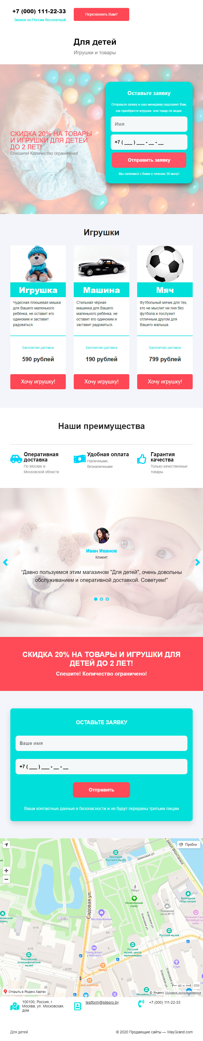 Закажите готовый продающий сайт лендинг #1509202 в Калининграде за 1-3 дня «под ключ»: свёрстан, отрисован и готов к рекламе. Тематика шаблона «Игрушки и товары».