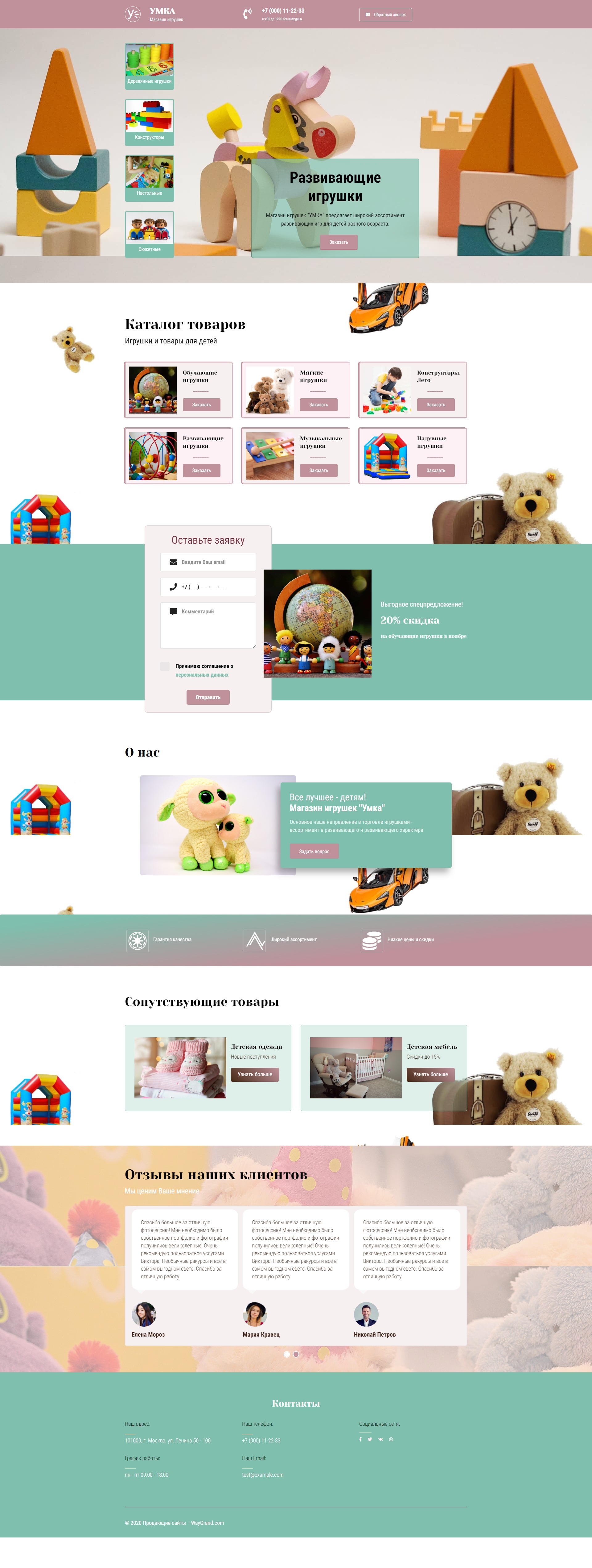 Закажите готовый продающий сайт лендинг #2442201 в Калининграде за 1-3 дня «под ключ»: свёрстан, отрисован и готов к рекламе. Тематика шаблона «Магазин игрушек».