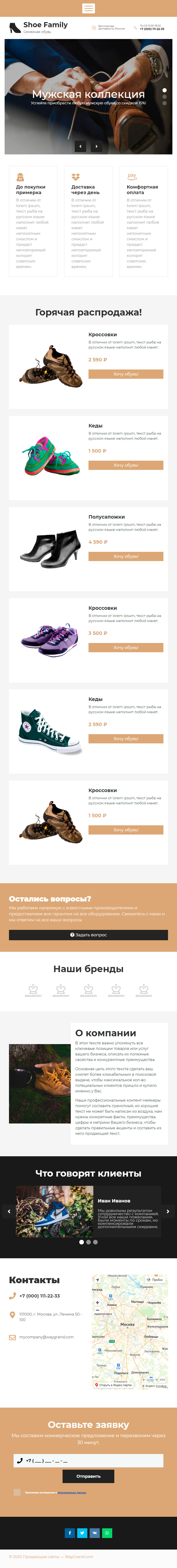 Закажите готовый продающий сайт лендинг #1517201 в Калининграде за 1-3 дня «под ключ»: свёрстан, отрисован и готов к рекламе. Тематика шаблона «Обувь».