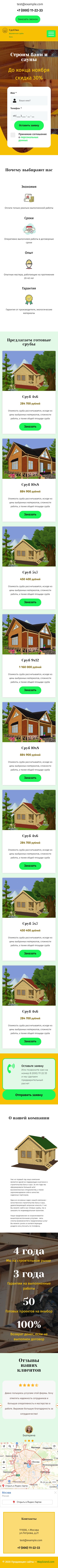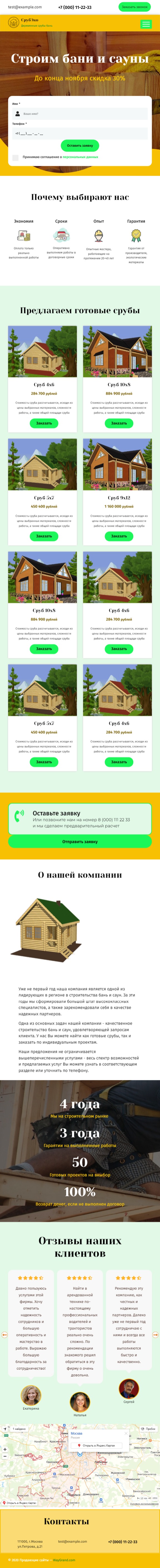 Закажите готовый продающий сайт лендинг #2172202 в Калининграде за 1-3 дня «под ключ»: свёрстан, отрисован и готов к рекламе. Тематика шаблона «Строительство бань и саун».