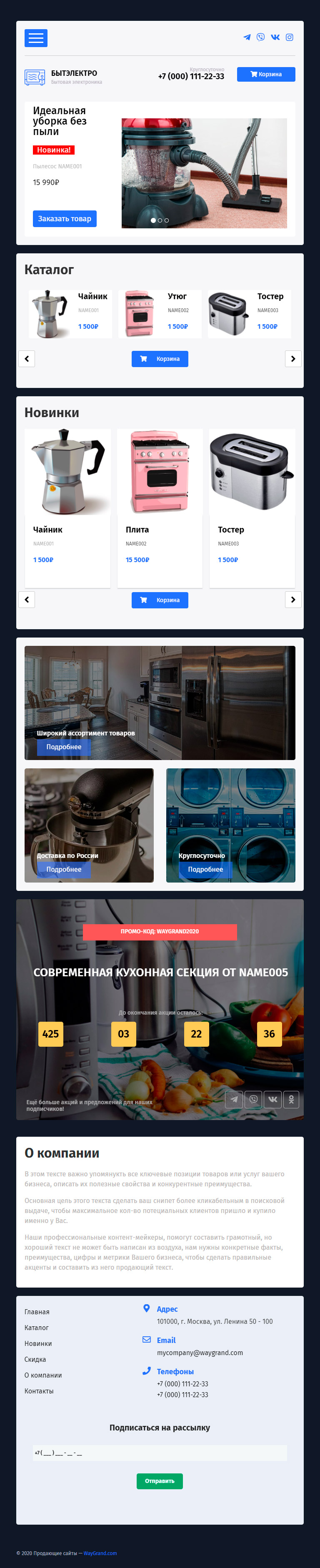 Закажите готовый продающий сайт лендинг #0703202 в Калининграде за 1-3 дня «под ключ»: свёрстан, отрисован и готов к рекламе. Тематика шаблона «Продажа бытовой электроники».