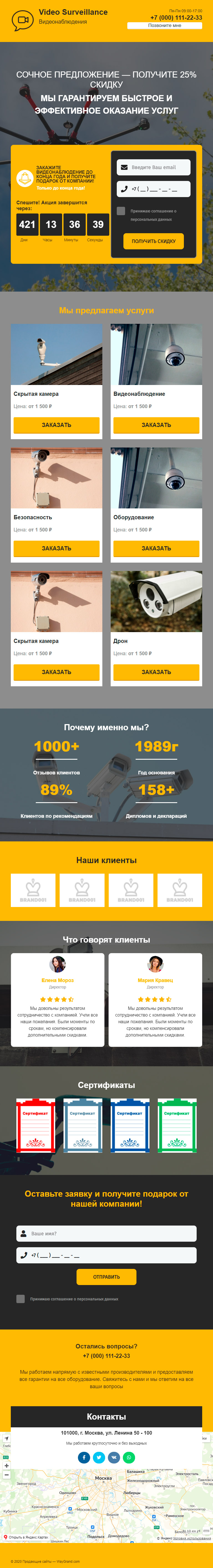 Закажите готовый продающий сайт лендинг #1609202 в Калининграде за 1-3 дня «под ключ»: свёрстан, отрисован и готов к рекламе. Тематика шаблона «Видеонаблюдение».