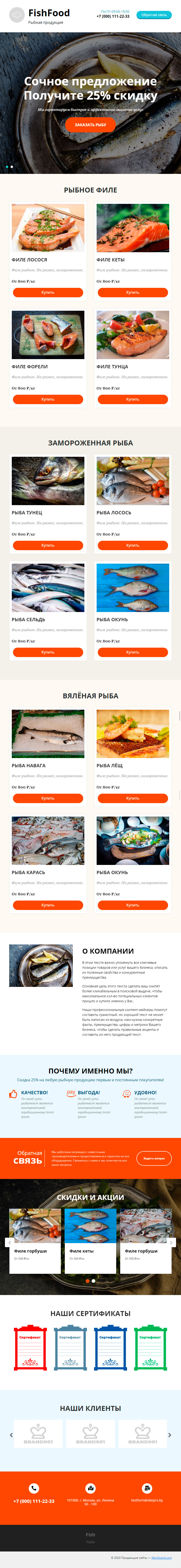 Закажите готовый продающий сайт лендинг #1731201 в Калининграде за 1-3 дня «под ключ»: свёрстан, отрисован и готов к рекламе. Тематика шаблона «Рыбная продукция».