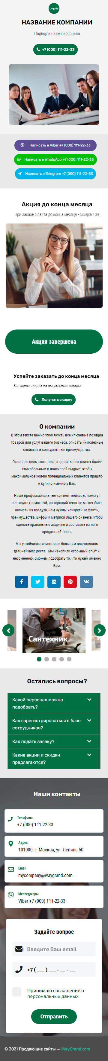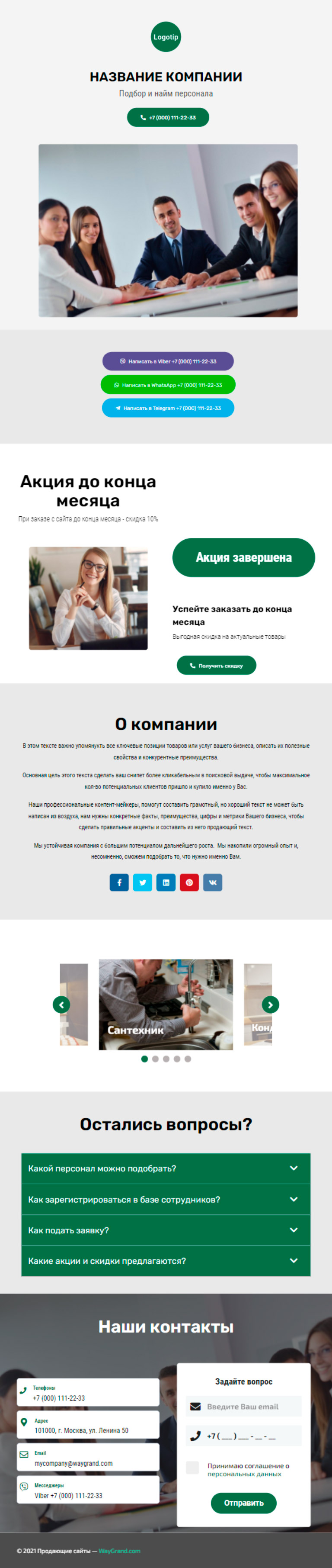 Закажите готовый продающий сайт визитка #1415101 в Калининграде за 5-7 дня «под ключ»: свёрстан, отрисован и готов к рекламе. Тематика шаблона «Подбор и найм персонала».