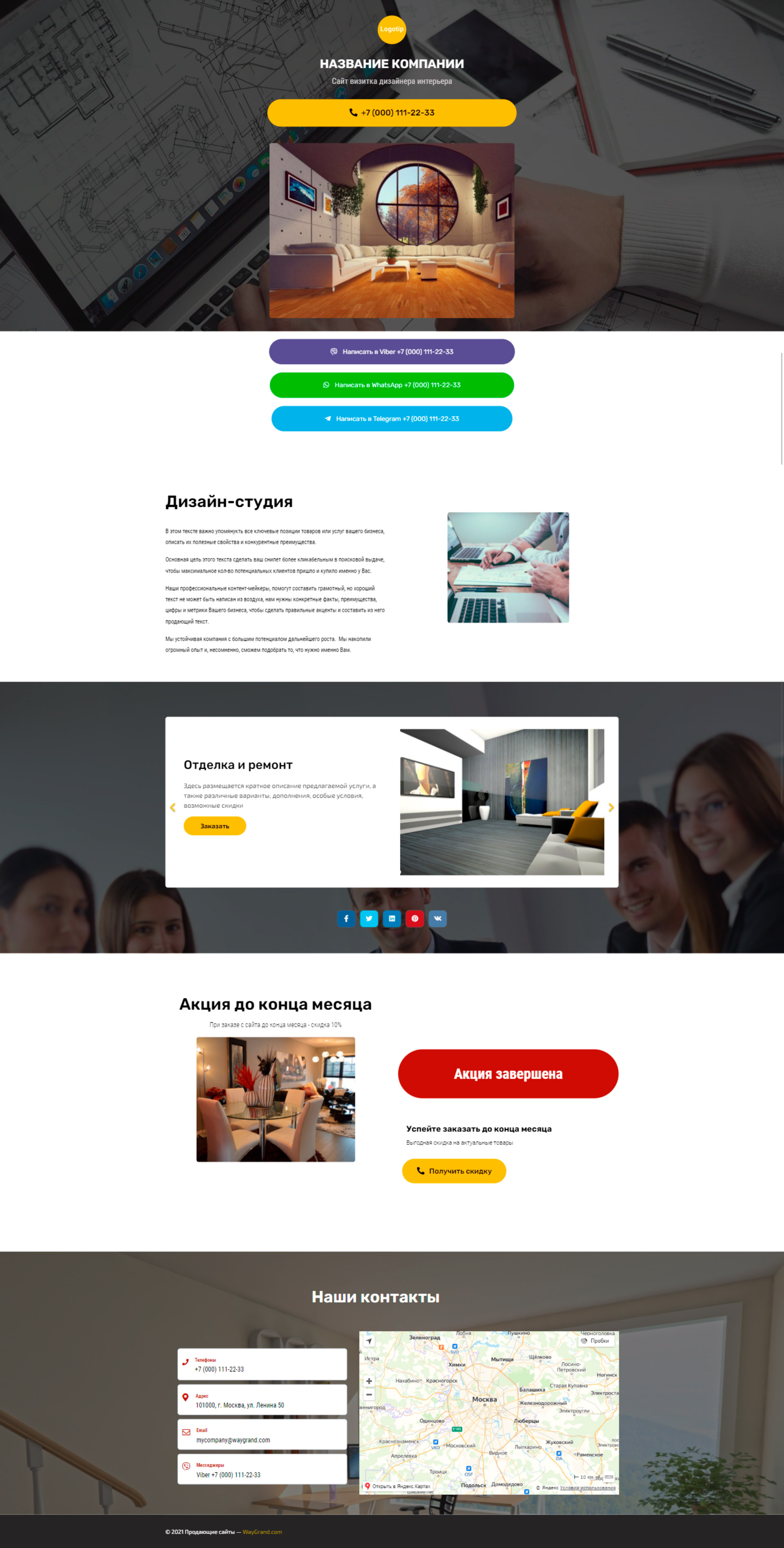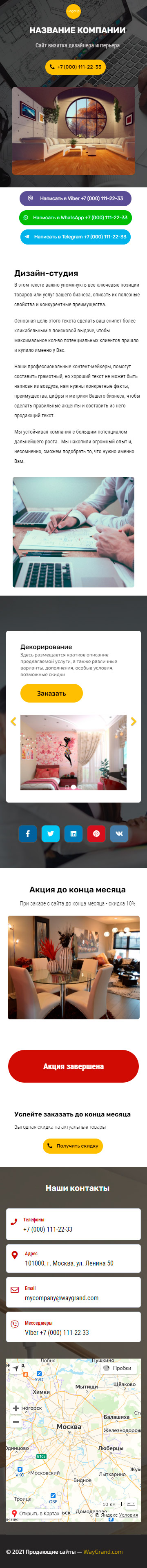 Закажите готовый продающий сайт визитка #2124101 в Калининграде за 5-7 дня «под ключ»: свёрстан, отрисован и готов к рекламе. Тематика шаблона «Дизайн интерьеров».