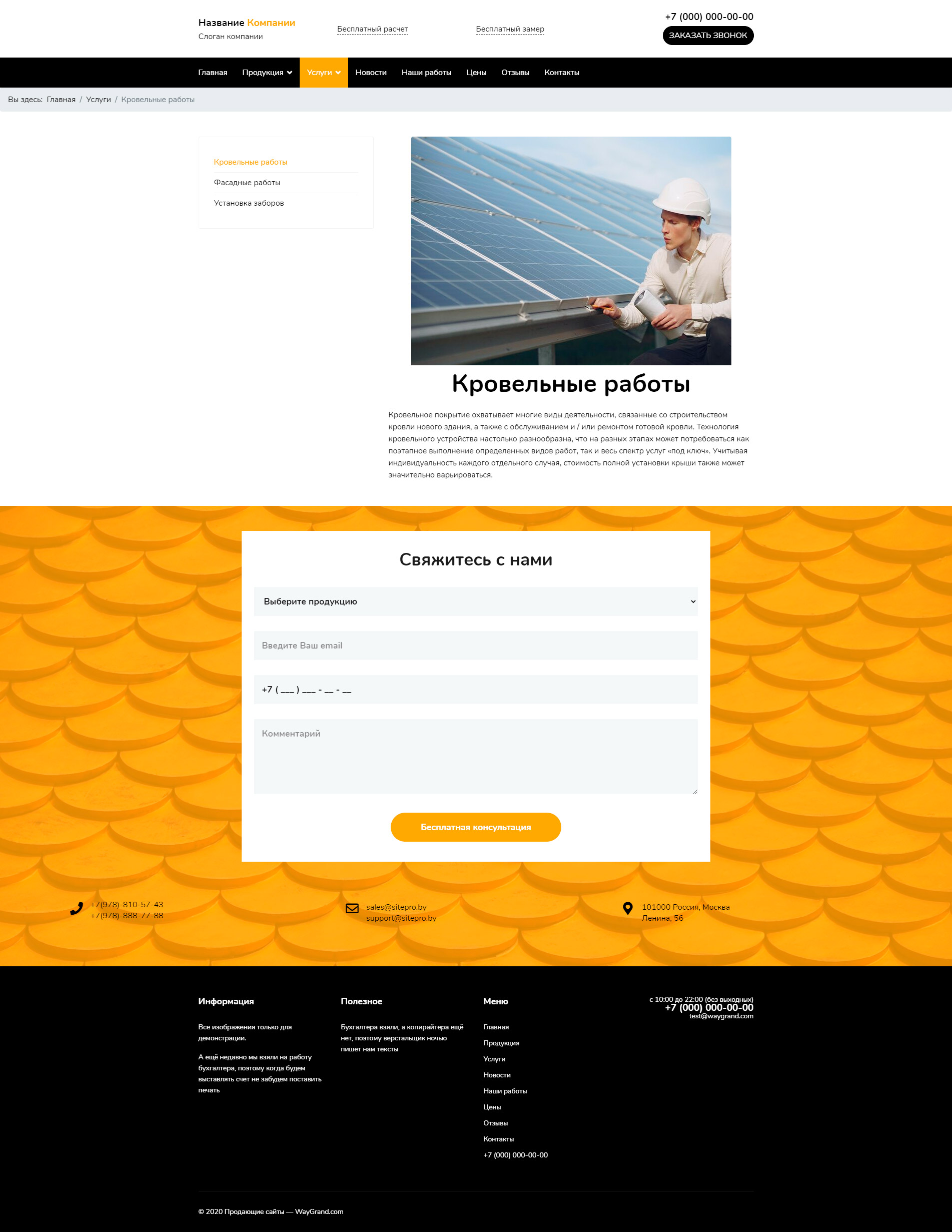 Закажите готовый продающий сайт визитка #2132301 в Калининграде за 5-7 дня «под ключ»: свёрстан, отрисован и готов к рекламе. Тематика шаблона «Заборы, кровля, фасады».