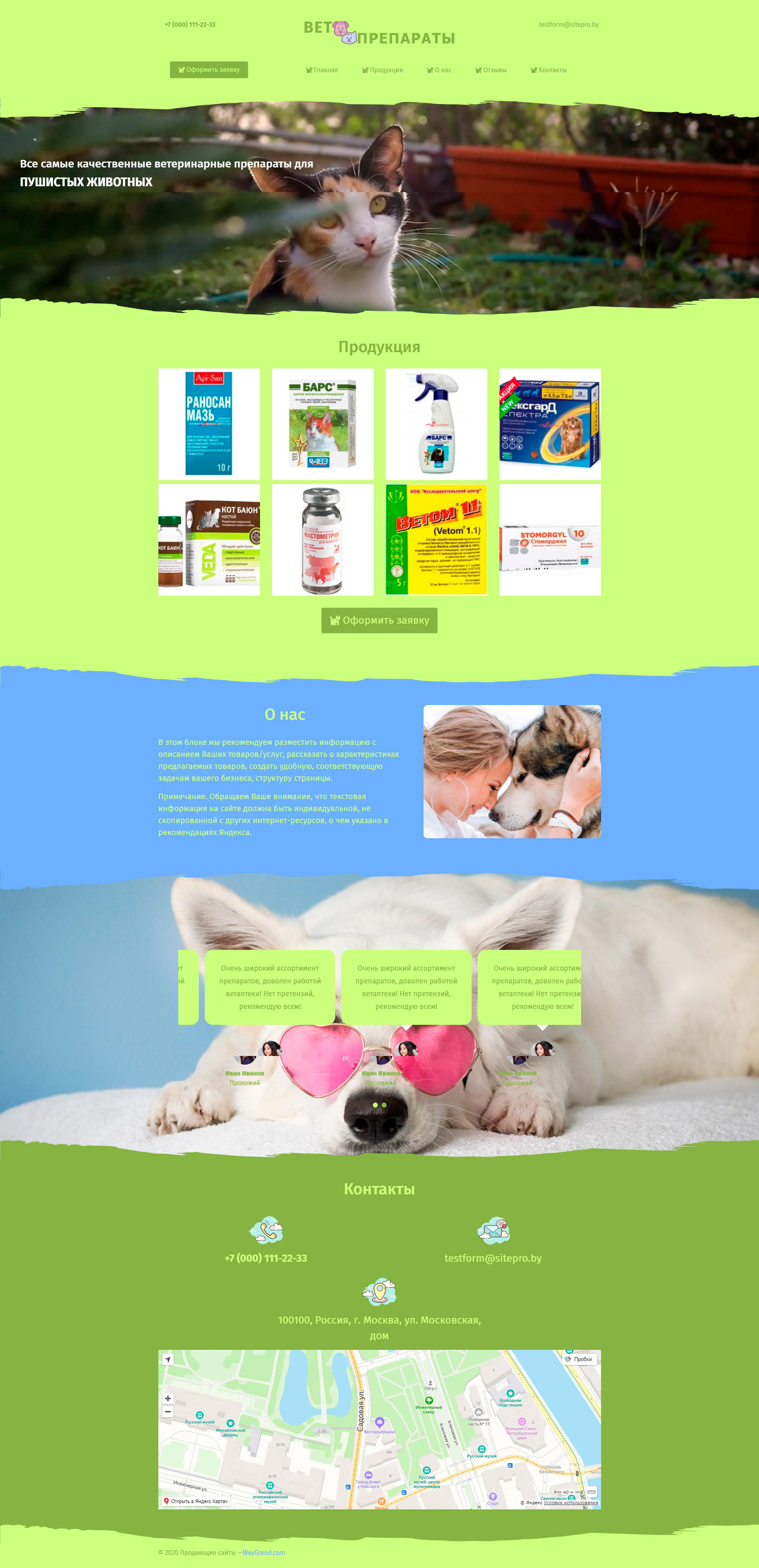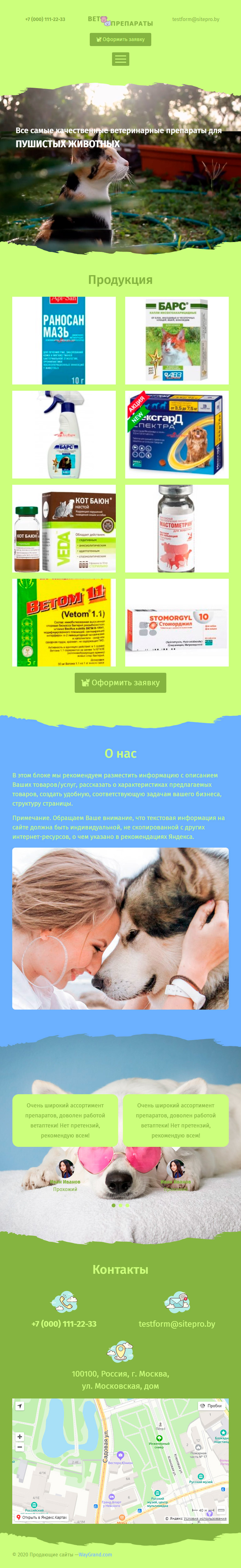 Закажите готовый продающий сайт лендинг #2305202 в Калининграде за 1-3 дня «под ключ»: свёрстан, отрисован и готов к рекламе. Тематика шаблона «Ветпрепараты».