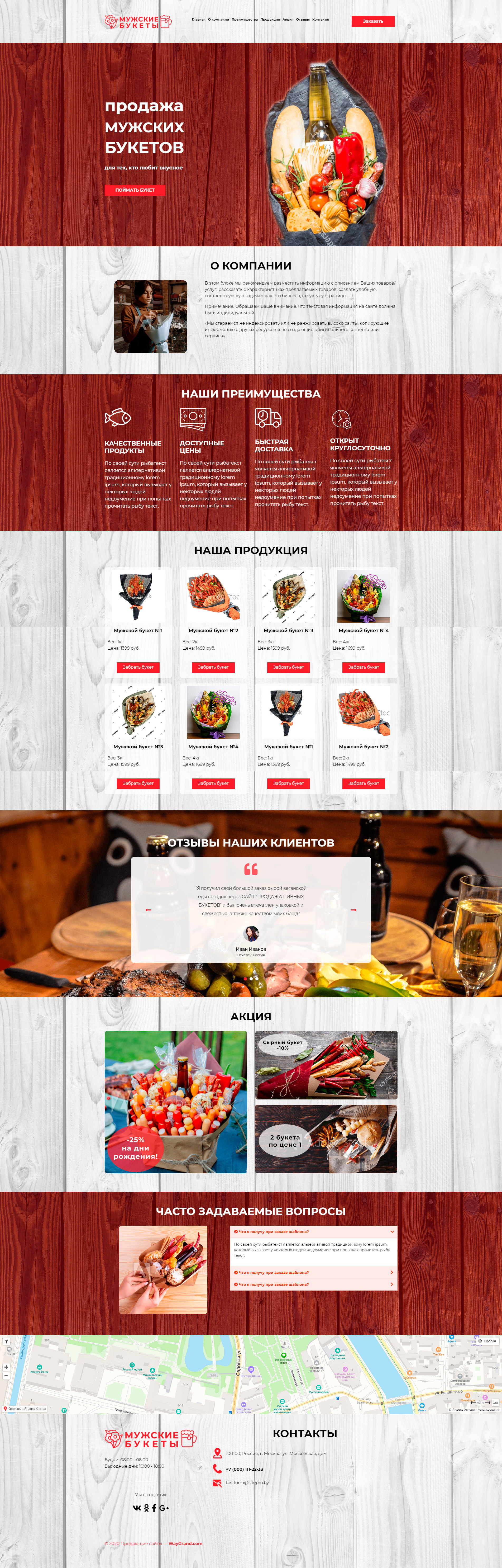 Закажите готовый продающий сайт лендинг #2404204 в Калининграде за 1-3 дня «под ключ»: свёрстан, отрисован и готов к рекламе. Тематика шаблона «Мужские букеты».