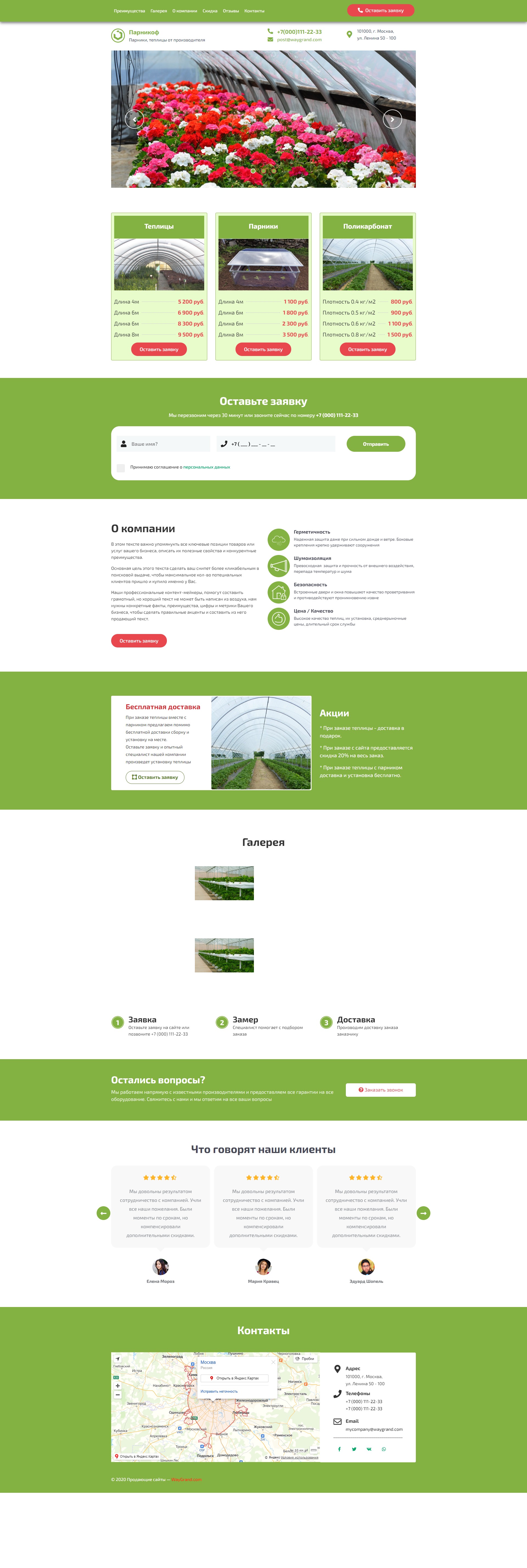 Закажите готовый продающий сайт лендинг #2624202 в Калининграде за 1-3 дня «под ключ»: свёрстан, отрисован и готов к рекламе. Тематика шаблона «Парники и теплицы».