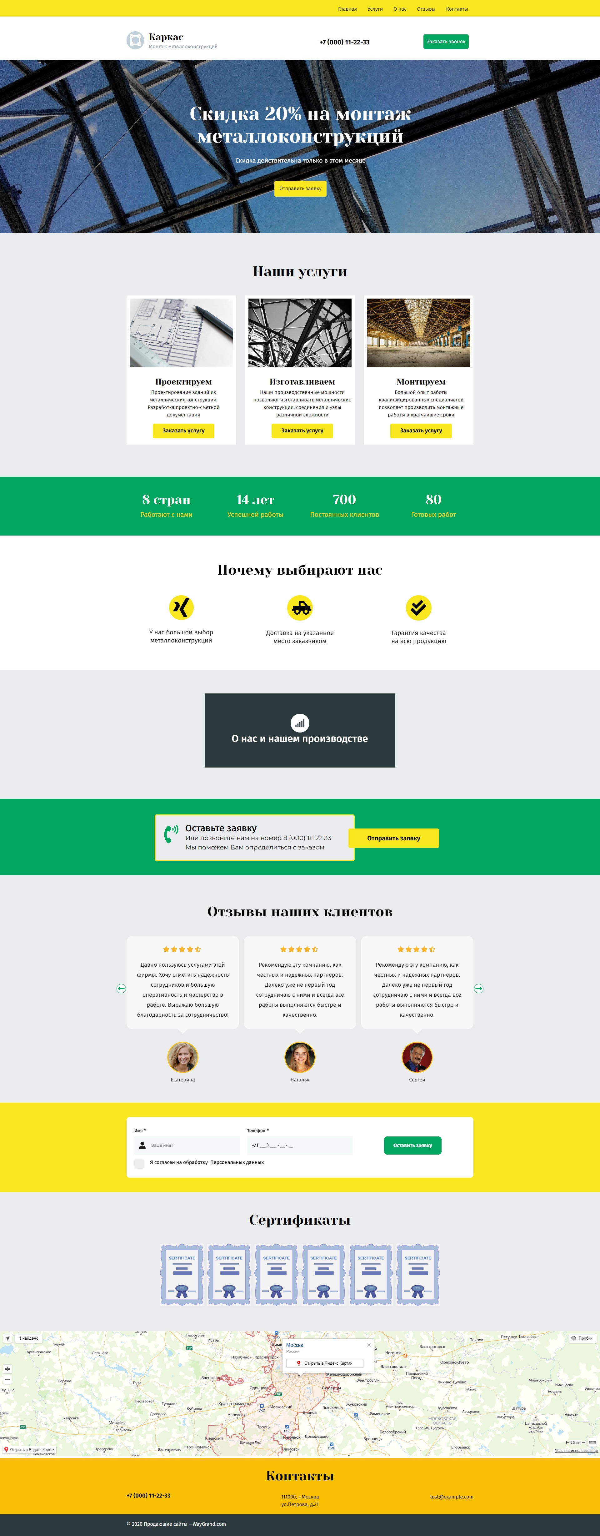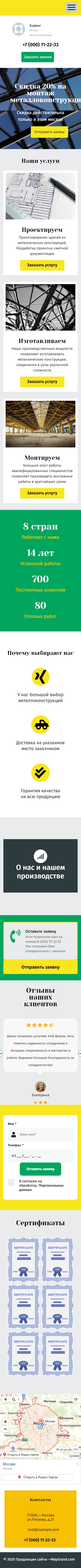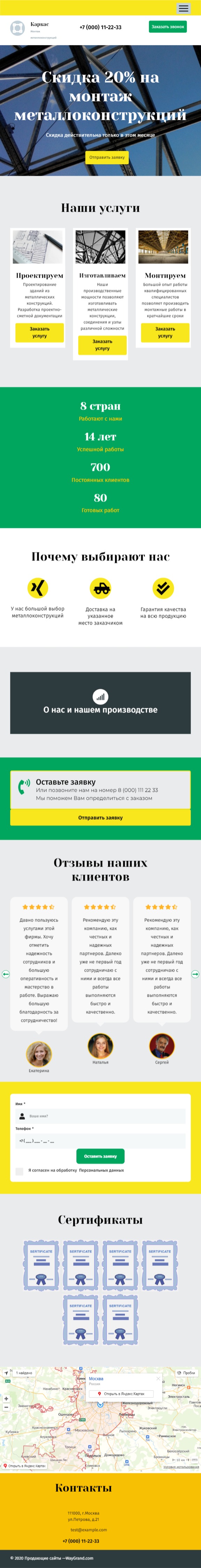Закажите готовый продающий сайт лендинг #2027201 в Калининграде за 1-3 дня «под ключ»: свёрстан, отрисован и готов к рекламе. Тематика шаблона «Металлоконструкции».
