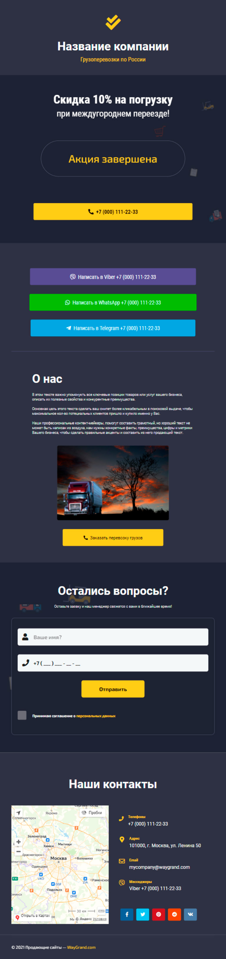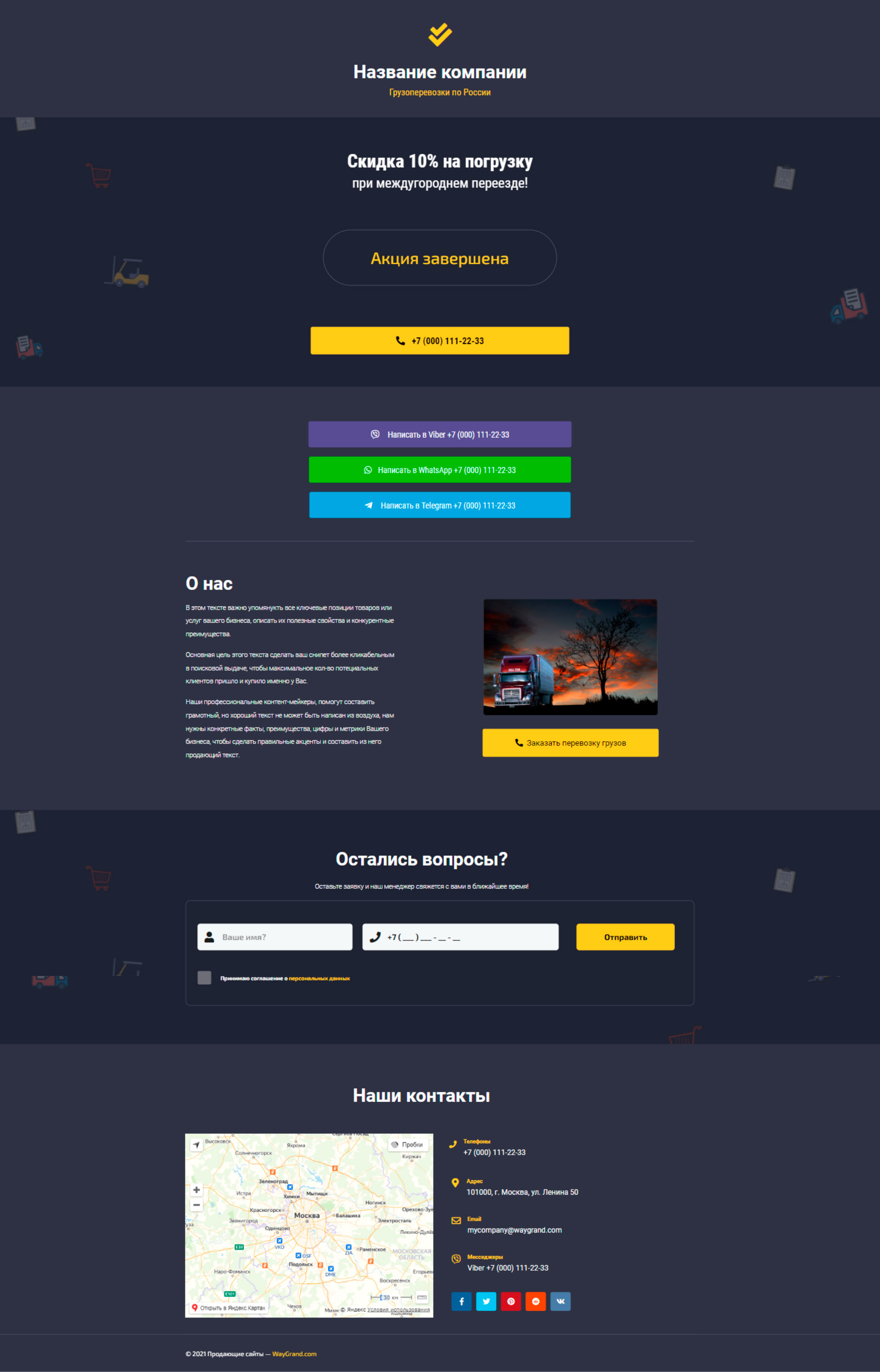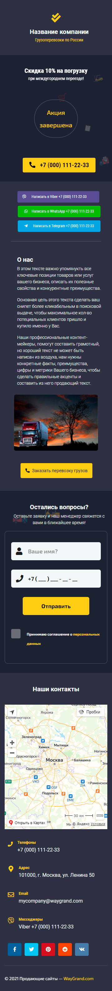 Закажите готовый продающий сайт визитка #2515101 в Калининграде за 5-7 дня «под ключ»: свёрстан, отрисован и готов к рекламе. Тематика шаблона «Грузоперевозки по России».