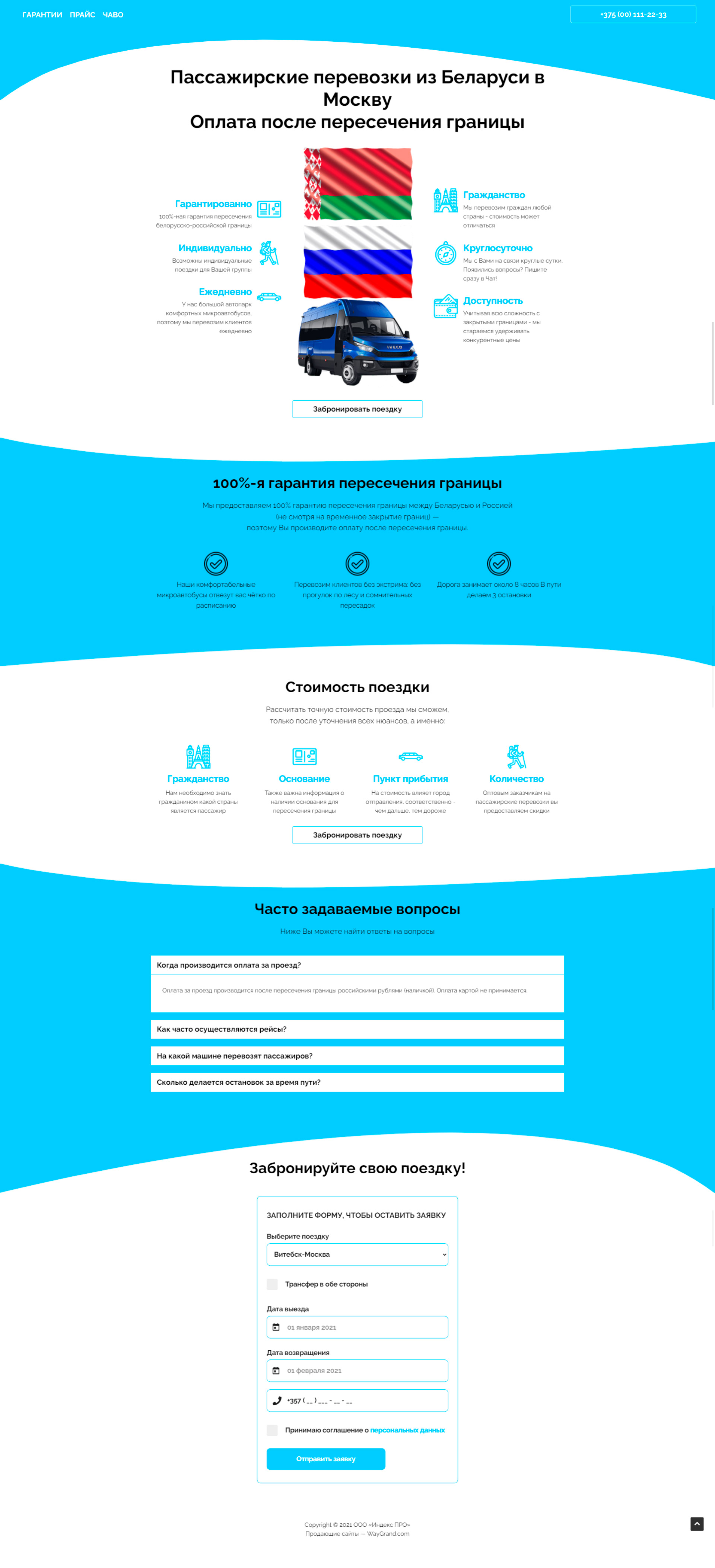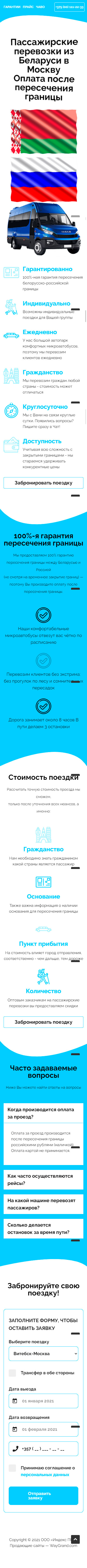 Закажите готовый продающий сайт лендинг #2528204 в Калининграде за 1-3 дня «под ключ»: свёрстан, отрисован и готов к рекламе. Тематика шаблона «Пассажирские перевозки из Беларуси в Москву».