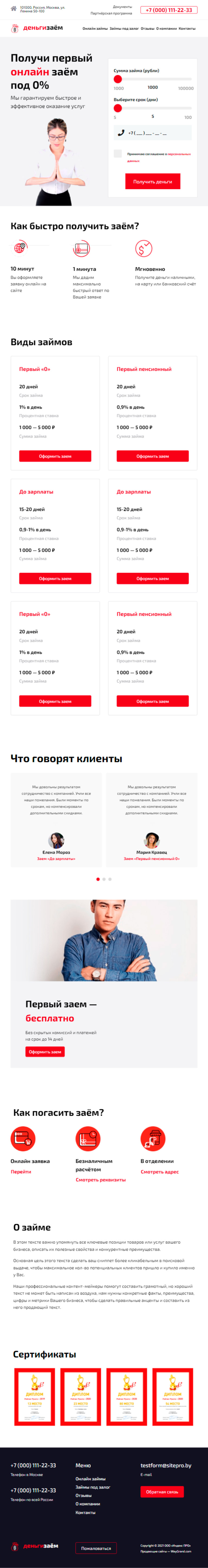 Закажите готовый продающий сайт лендинг #2825201 в Калининграде за 1-3 дня «под ключ»: свёрстан, отрисован и готов к рекламе. Тематика шаблона «Деньги в долг».