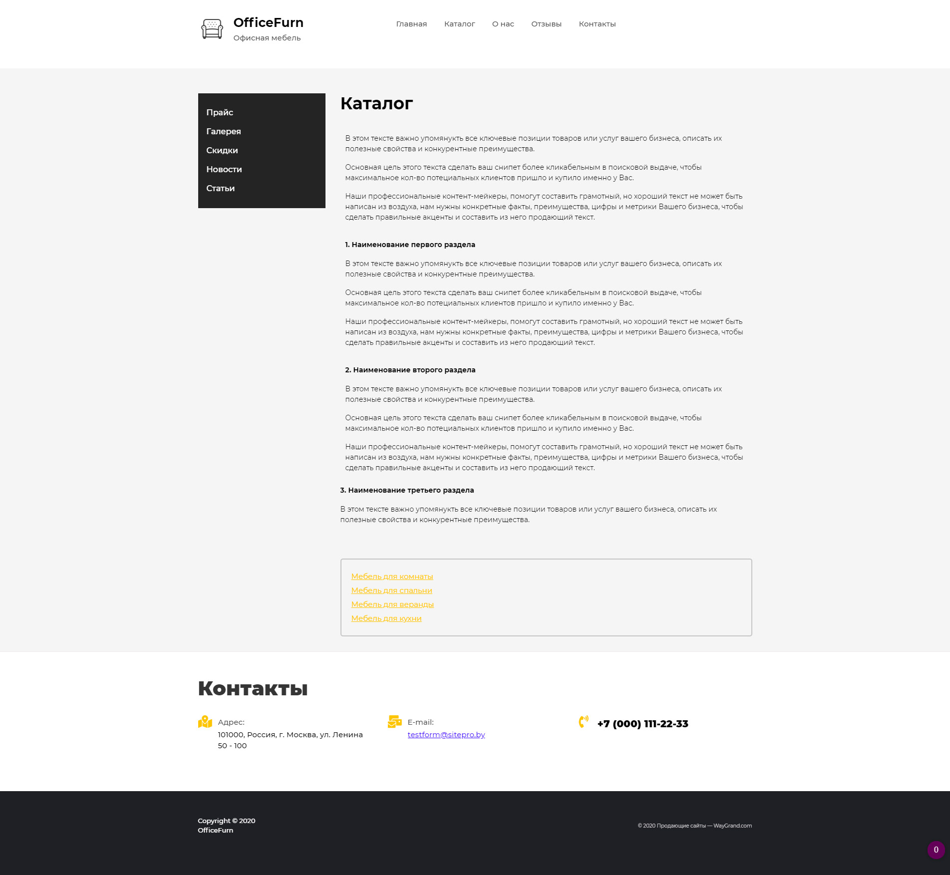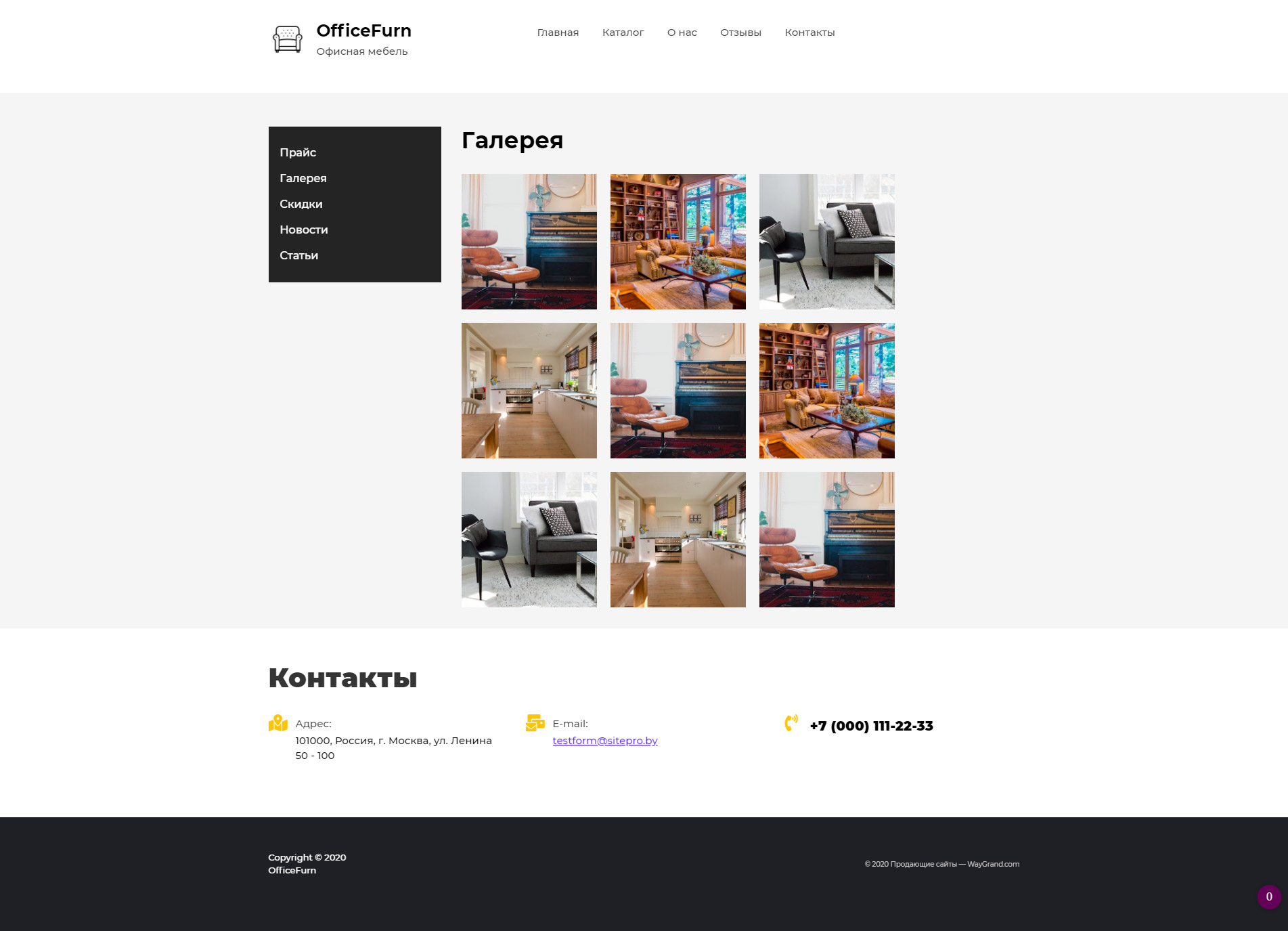 Закажите готовый продающий сайт визитка #0921301 в Калининграде за 5-7 дня «под ключ»: свёрстан, отрисован и готов к рекламе. Тематика шаблона «Офисная мебель».