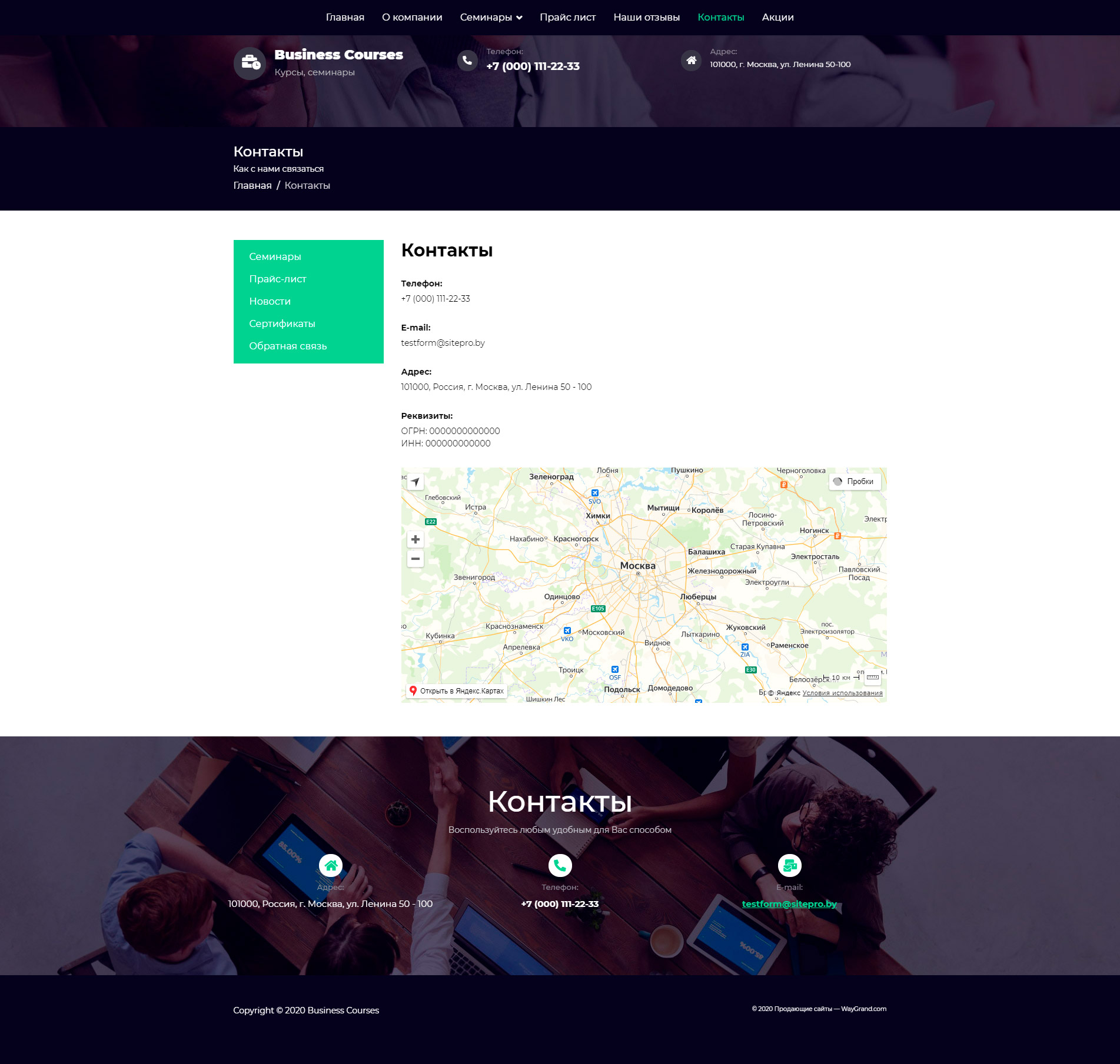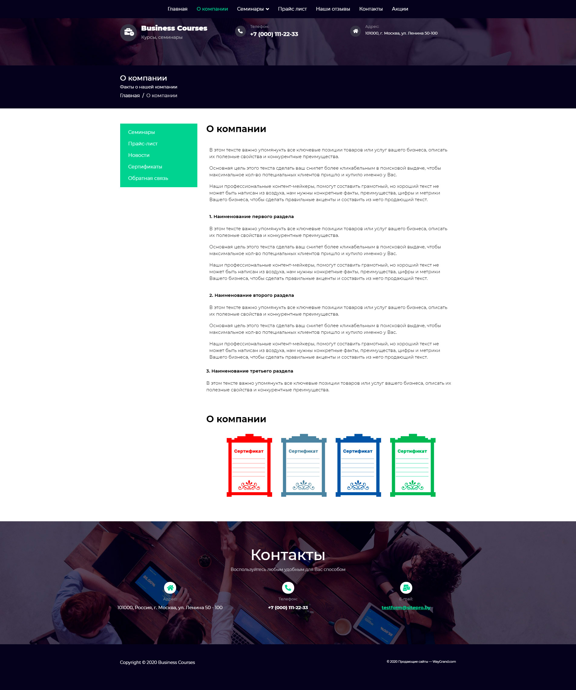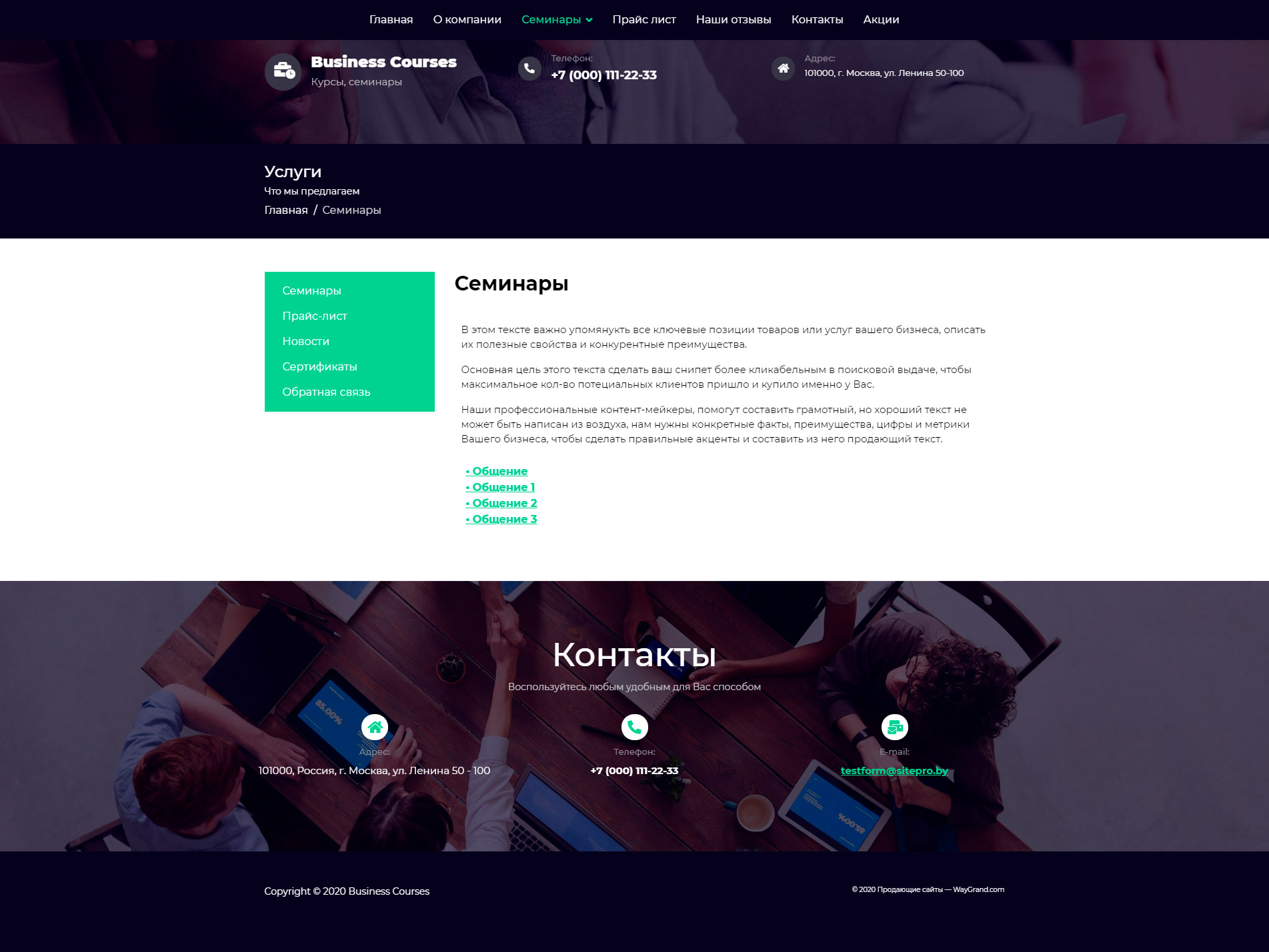 Закажите готовый продающий сайт визитка #1448303 в Калининграде за 5-7 дня «под ключ»: свёрстан, отрисован и готов к рекламе. Тематика шаблона «Бизнес курсы и семинары».