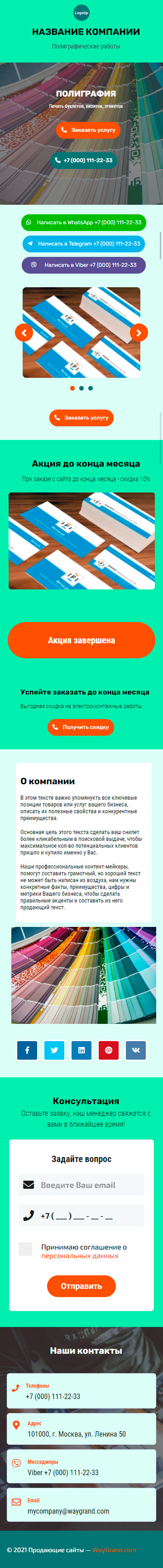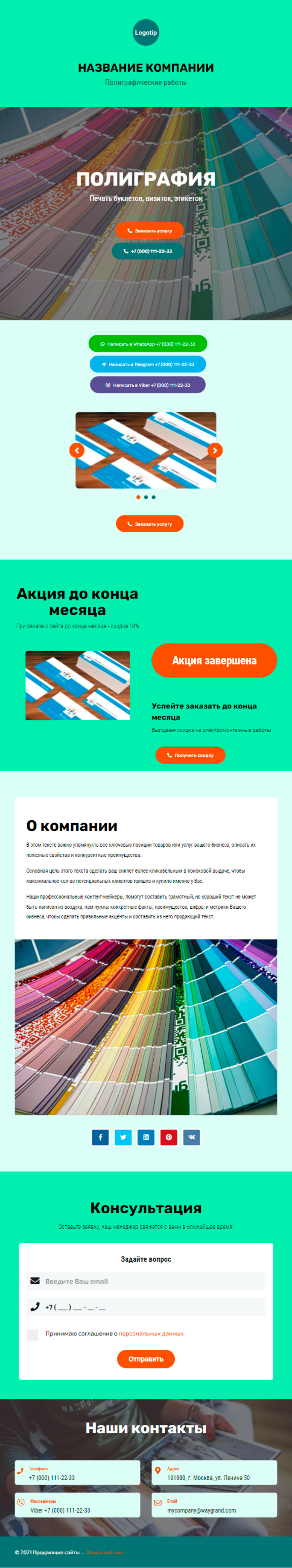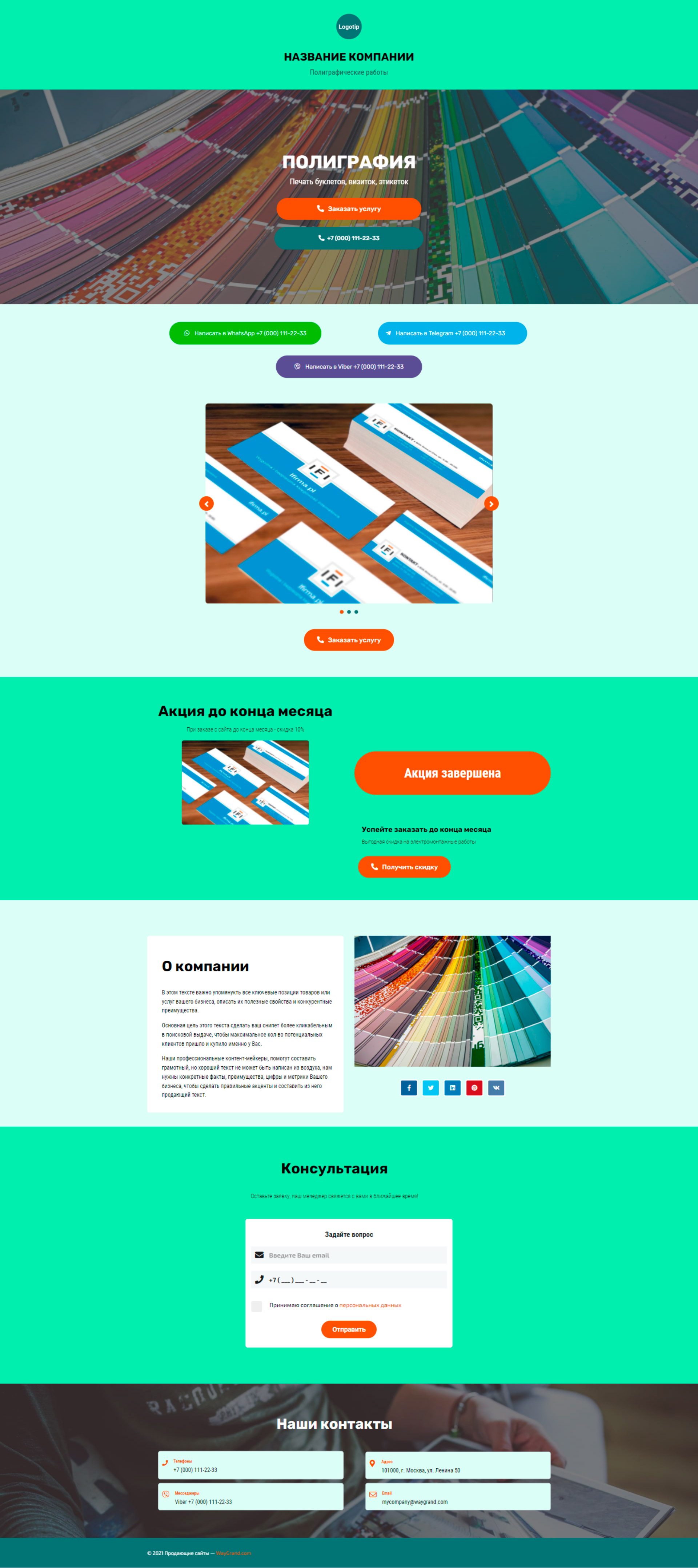 Закажите готовый продающий сайт визитка #1826101 в Калининграде за 5-7 дня «под ключ»: свёрстан, отрисован и готов к рекламе. Тематика шаблона «Полиграфия».