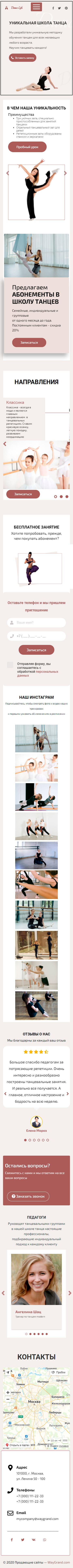 Закажите готовый продающий сайт лендинг #1923202 в Калининграде за 1-3 дня «под ключ»: свёрстан, отрисован и готов к рекламе. Тематика шаблона «Школа танцев».