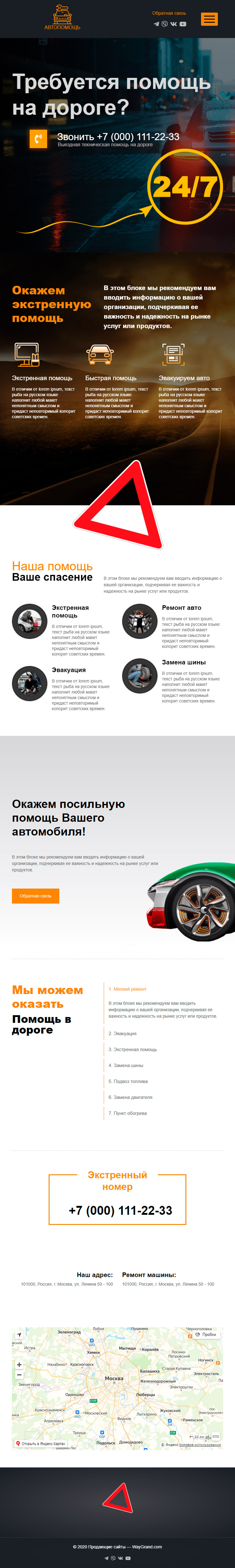 Готовый продающий сайт лендинг #0218201 в Калининграде за 1-3 дня «под ключ» по доступным ценам на Waygrand: свёрстан, отрисован и готов к рекламе. Тематика шаблона «Выездная техническая помощь».