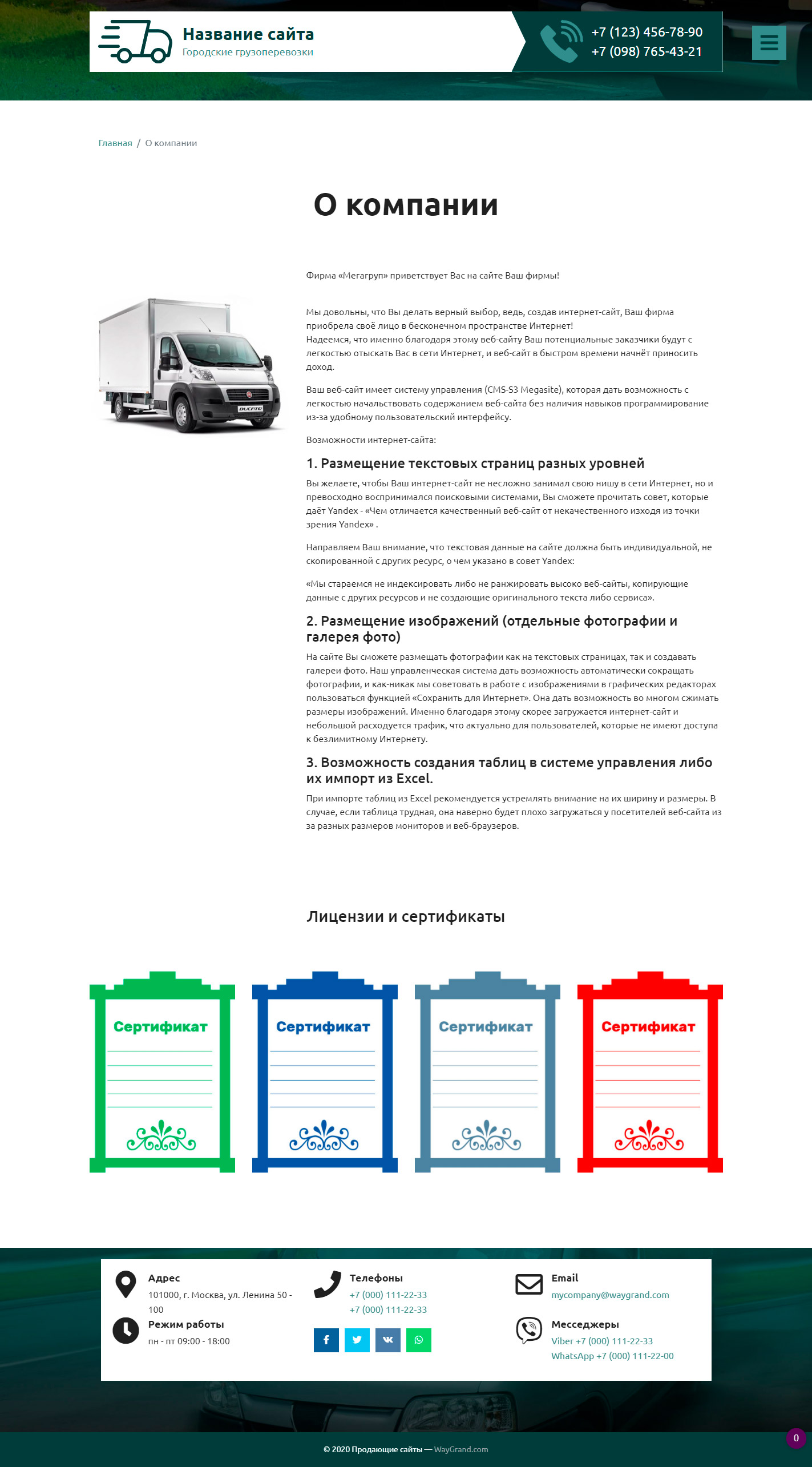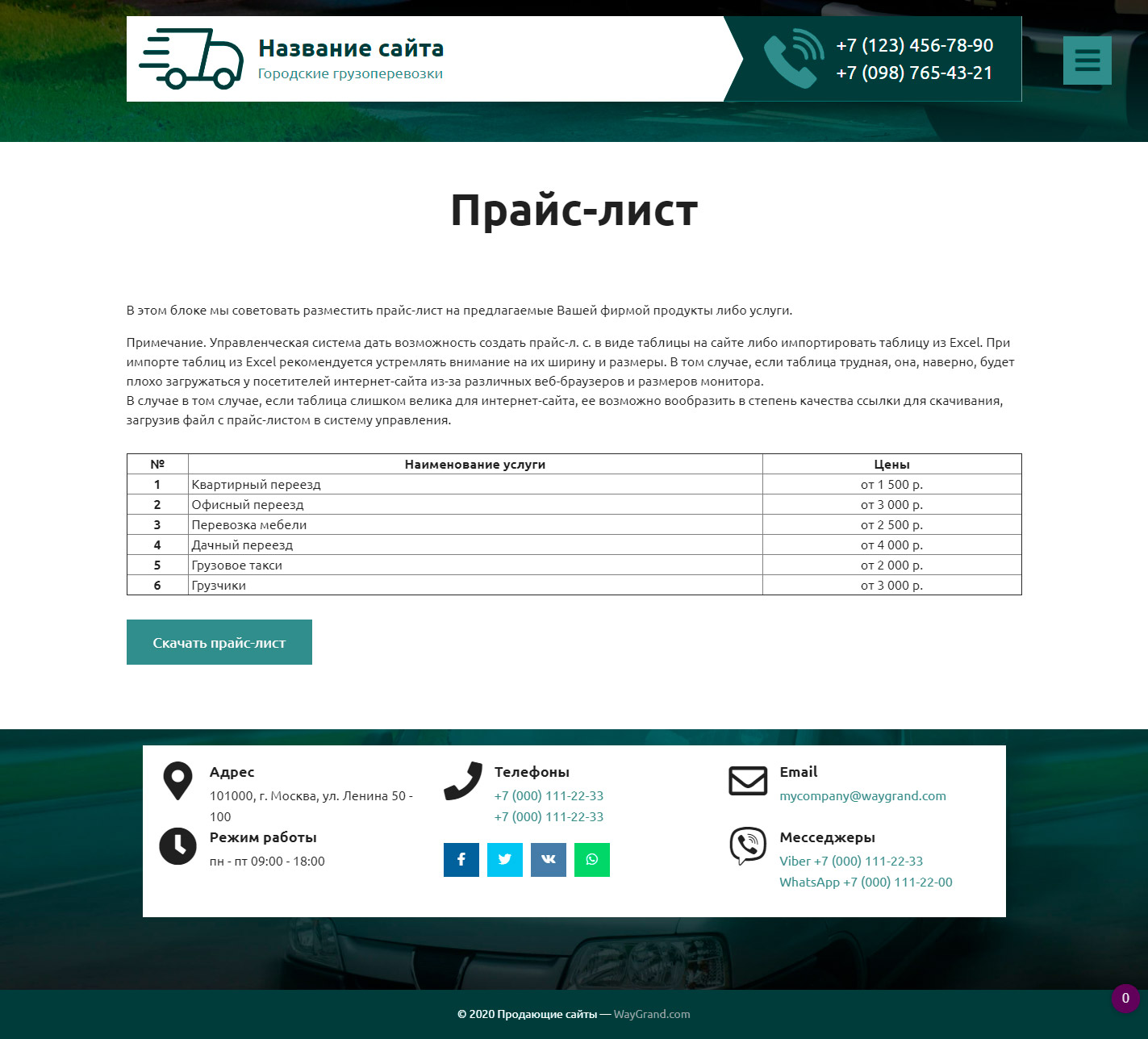 Закажите готовый продающий сайт визитка #2515302 в Калининграде за 5-7 дня «под ключ» по доступным ценам на WayGrand: свёрстан, отрисован и готов к рекламе. Тематика шаблона «Городские грузоперевозки».