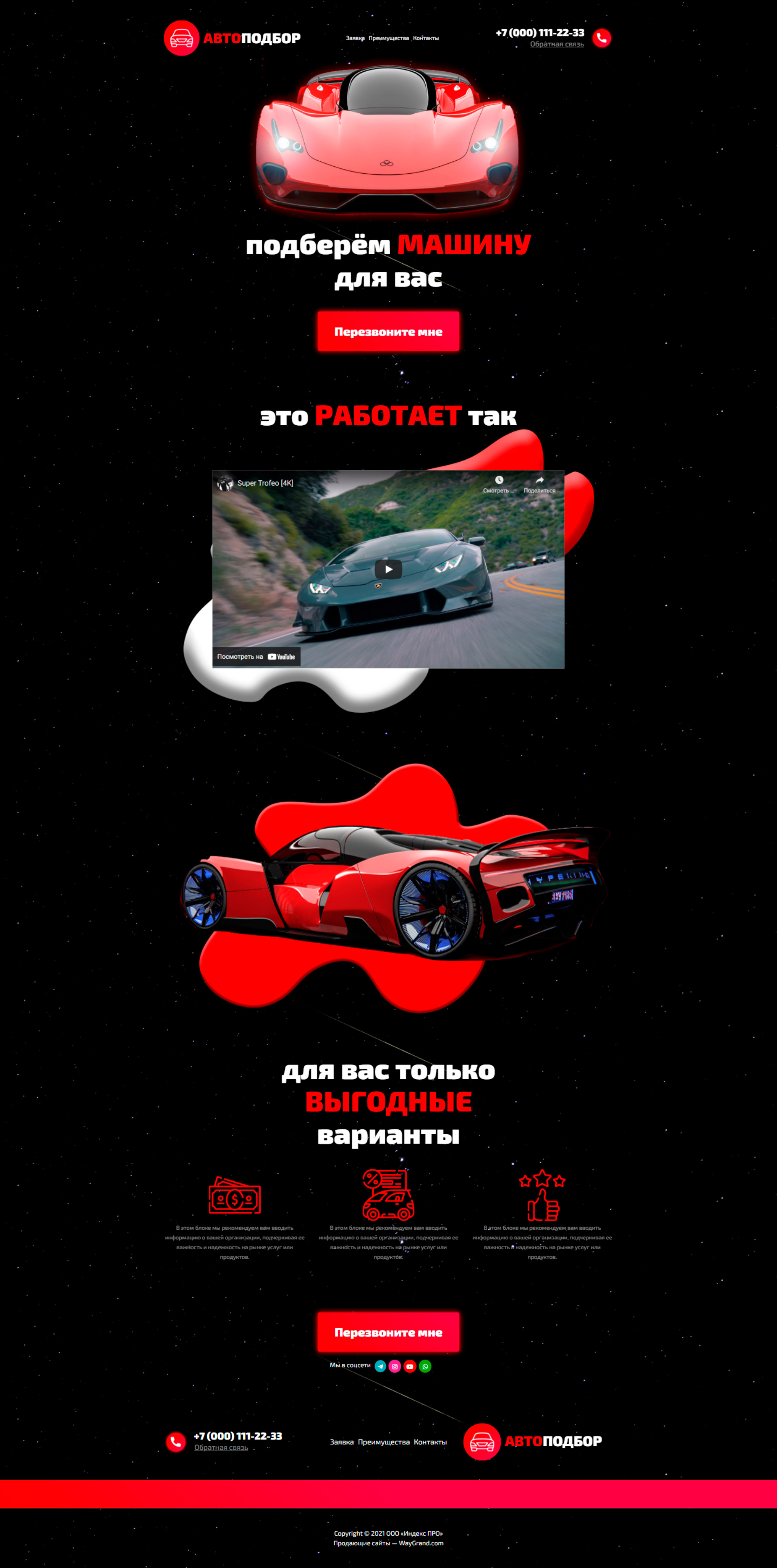 Закажите готовый продающий сайт лендинг #3275201 в Калининграде за 1-3 дня «под ключ»: свёрстан, отрисован и готов к рекламе. Тематика шаблона «Автоподбор».