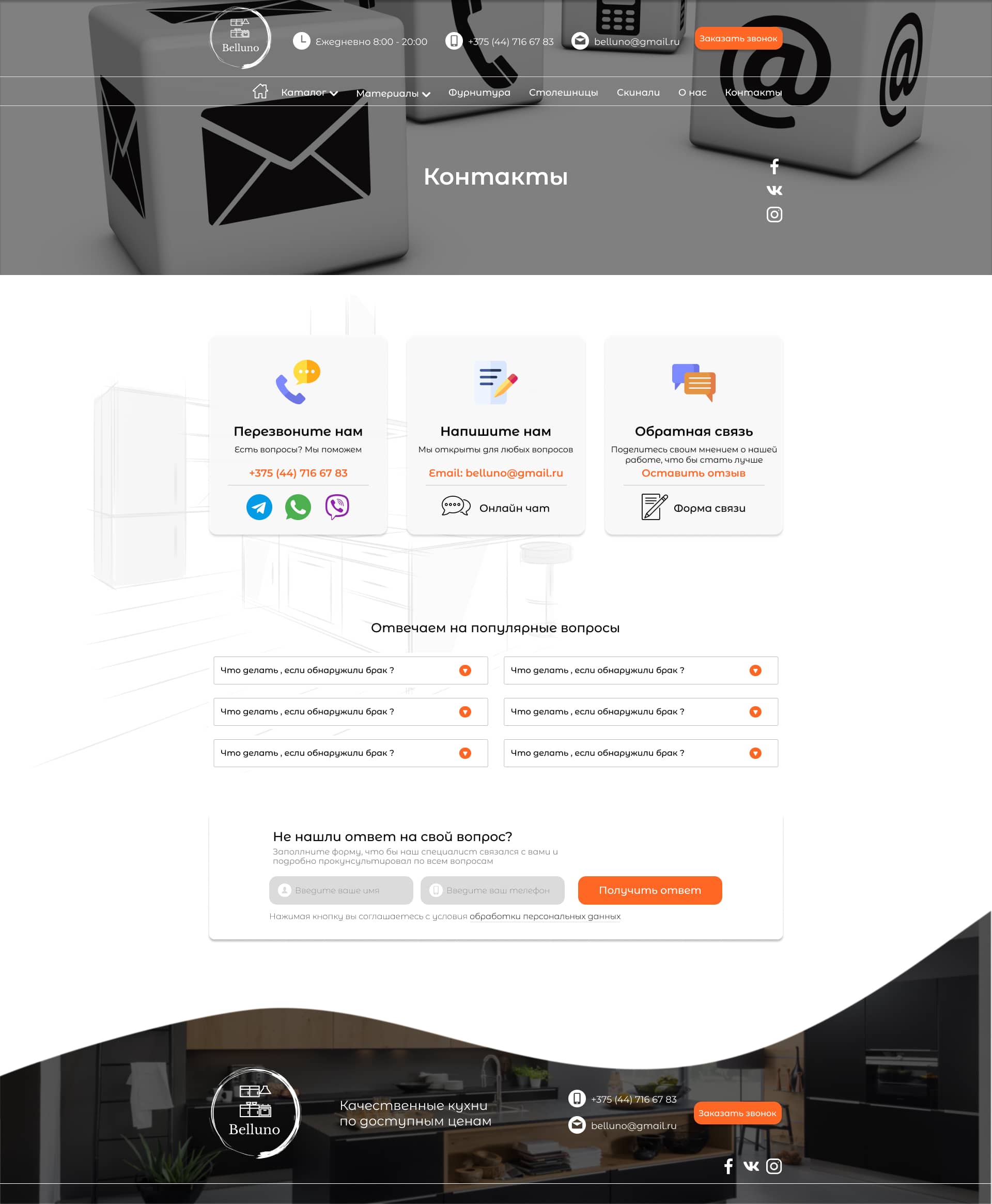 Закажите готовый продающий сайт визитка #282 в Калининграде за 5-7 дня «под ключ»: свёрстан, отрисован и готов к рекламе. Тематика шаблона «Кухни».