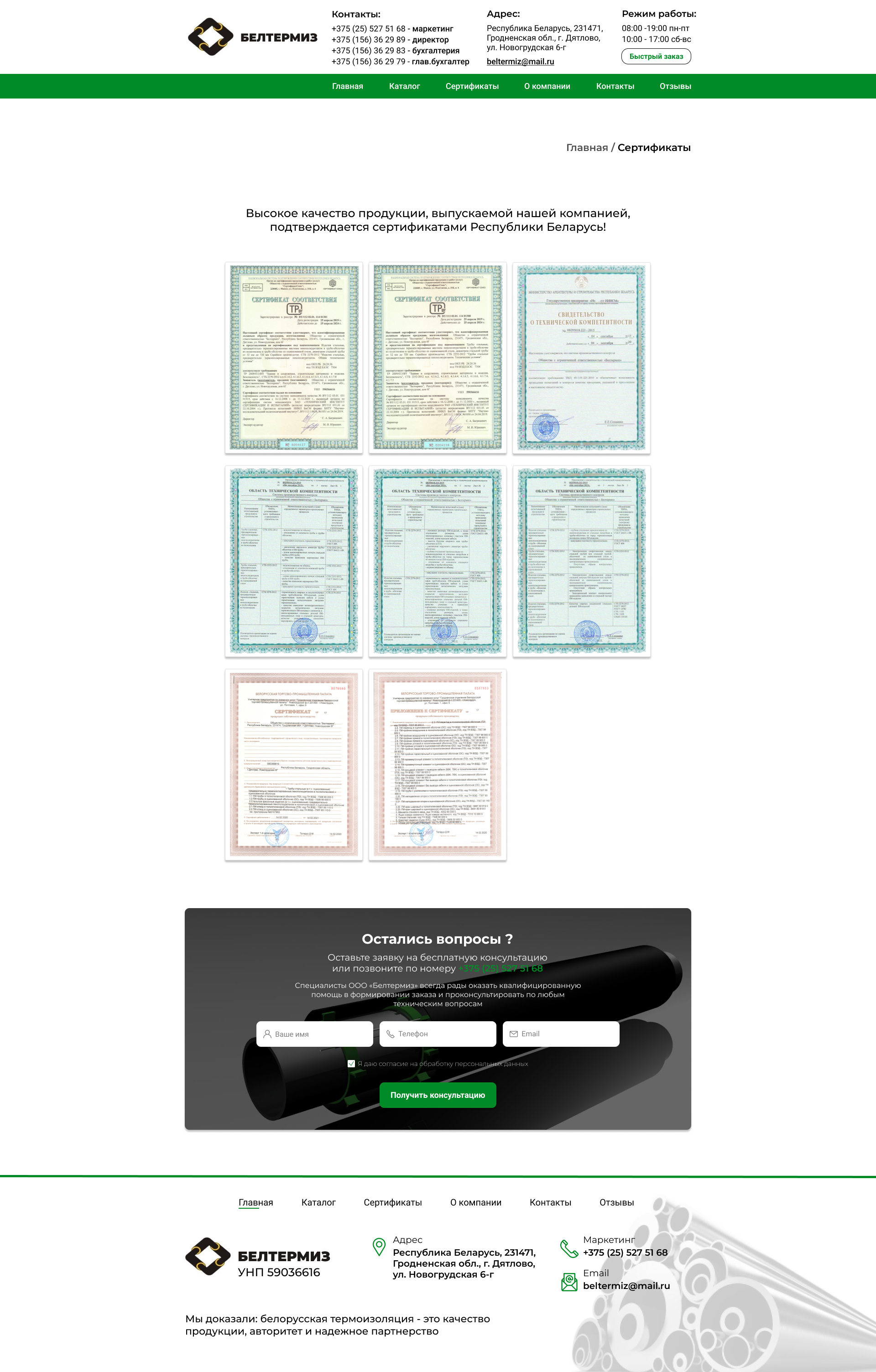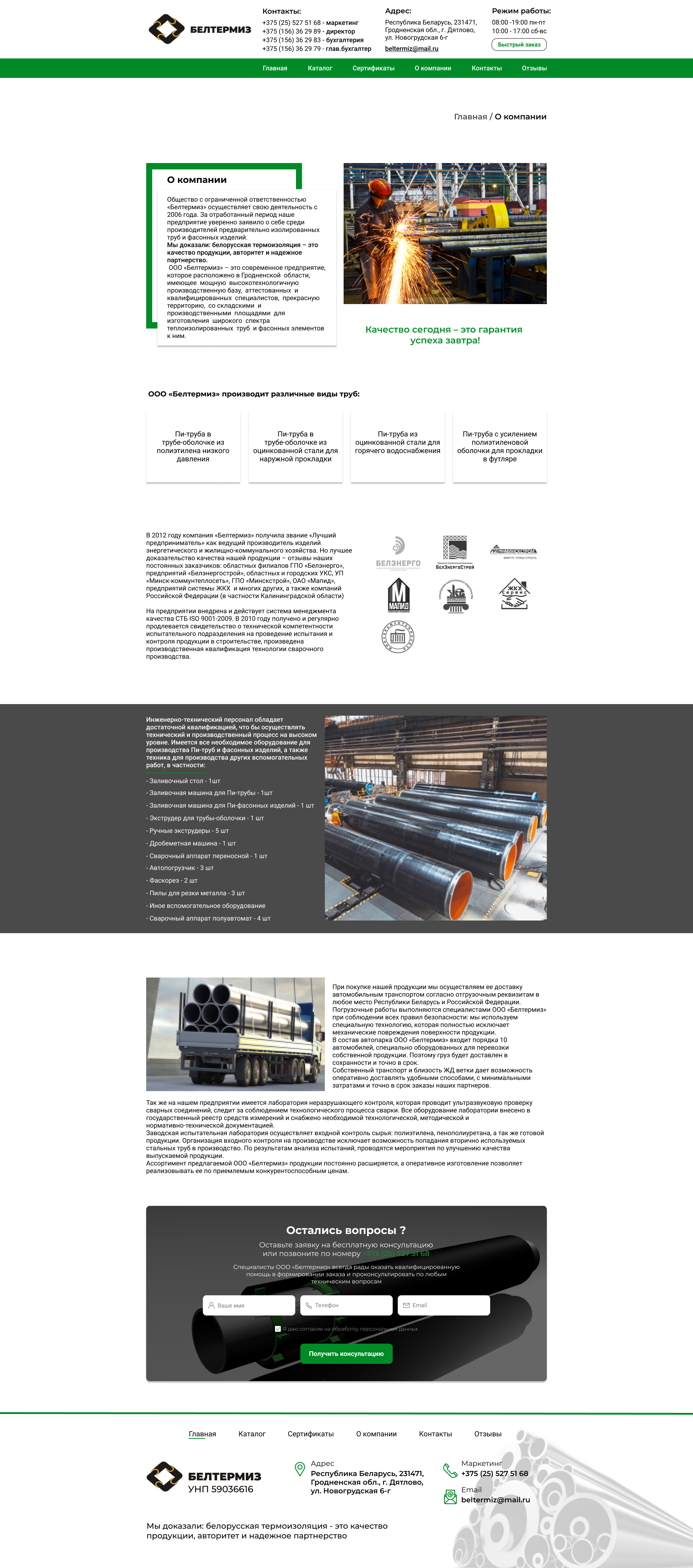 Закажите готовый продающий сайт визитка #141 в Калининграде за 5-7 дня «под ключ»: свёрстан, отрисован и готов к рекламе. Тематика шаблона «Производство ПИ-труб».