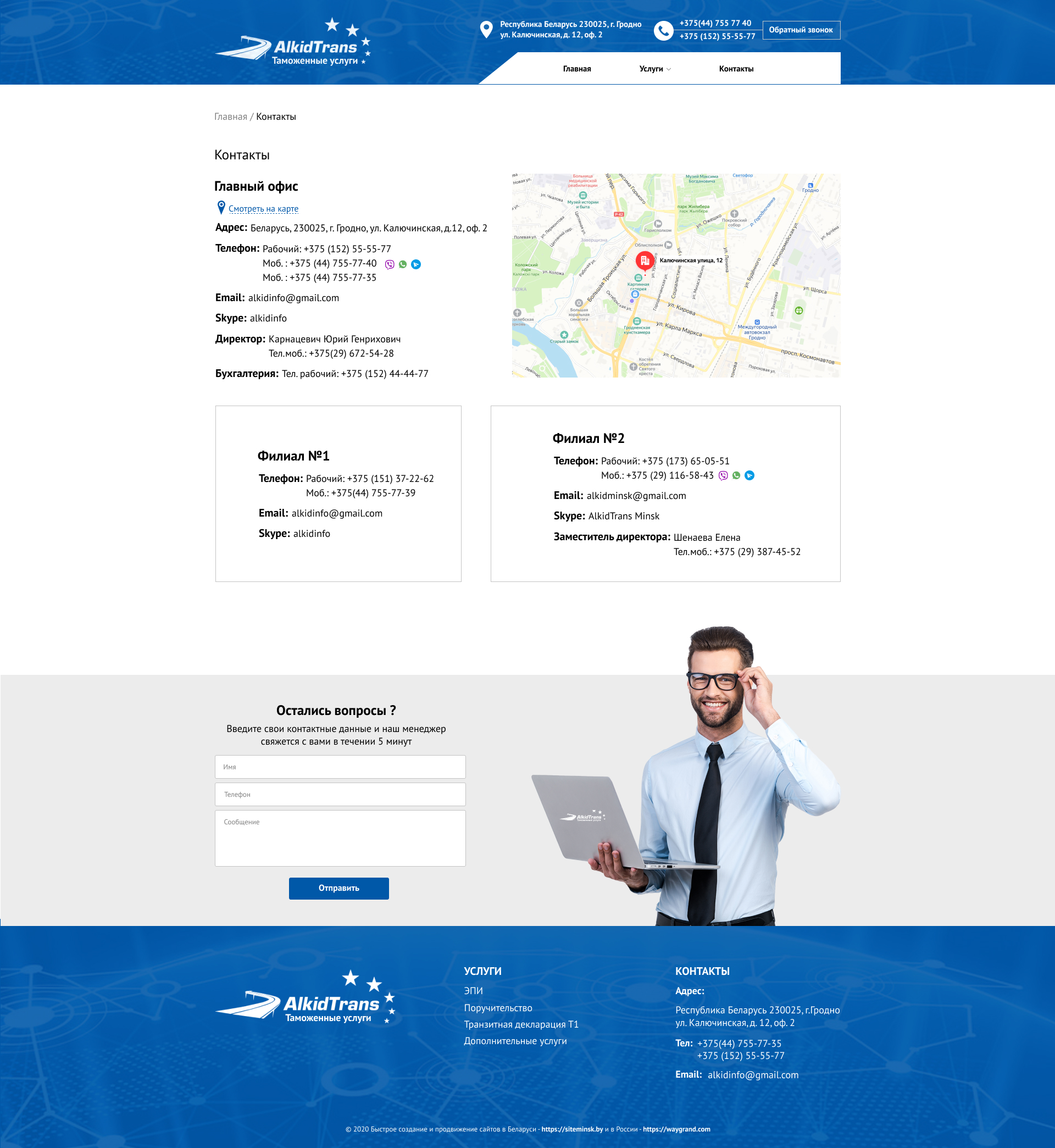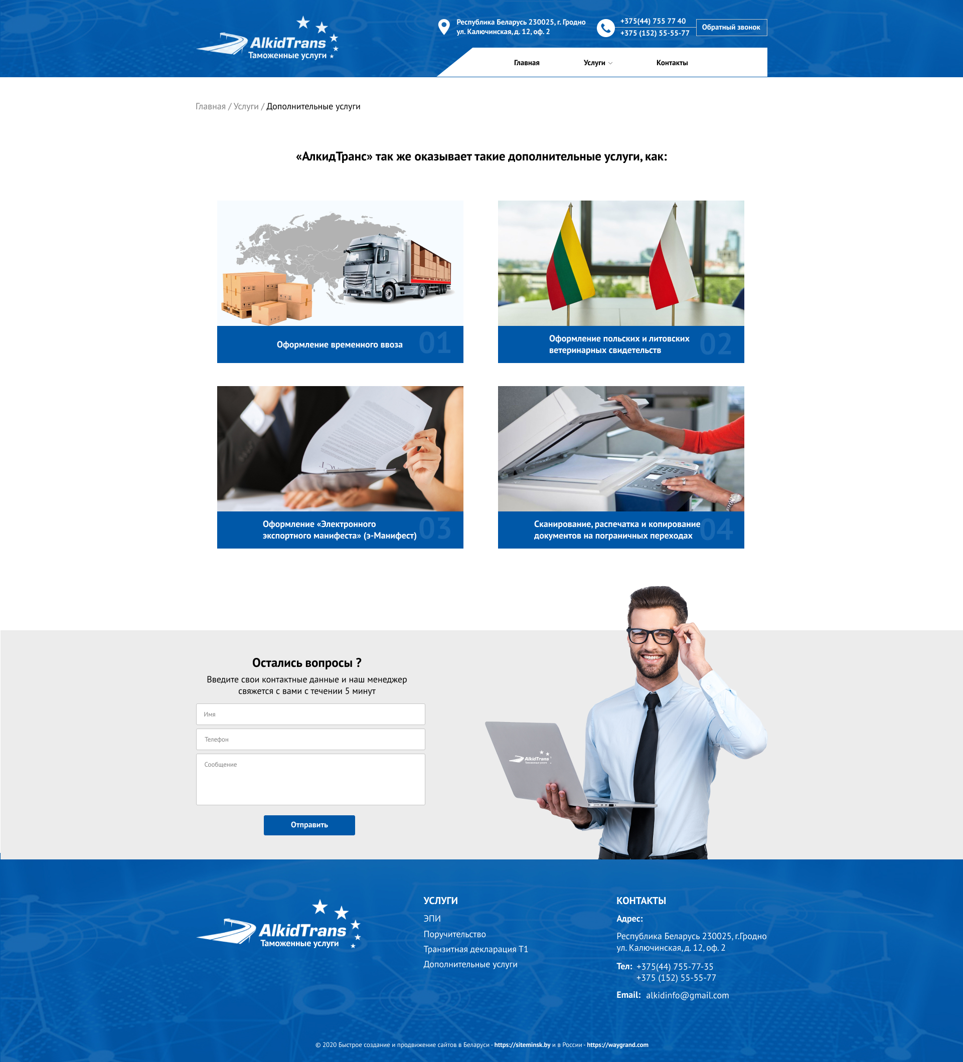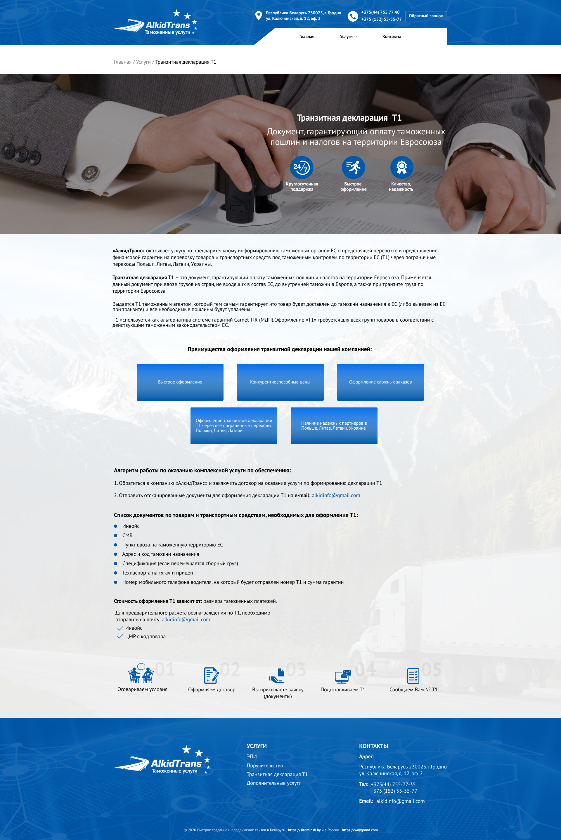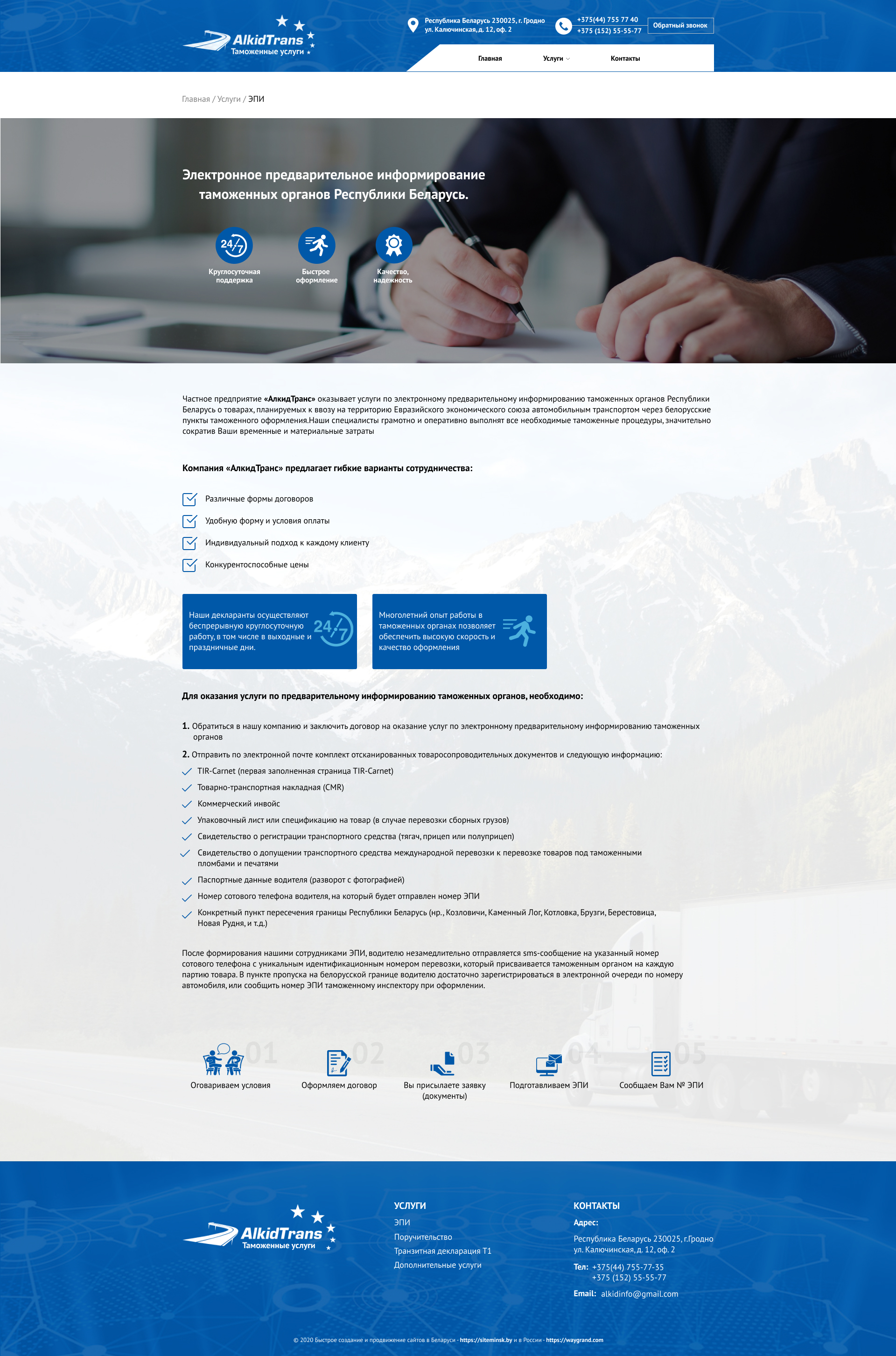 Закажите готовый продающий сайт визитка #234 в Калининграде за 5-7 дня «под ключ»: свёрстан, отрисован и готов к рекламе. Тематика шаблона «Таможенные услуги».